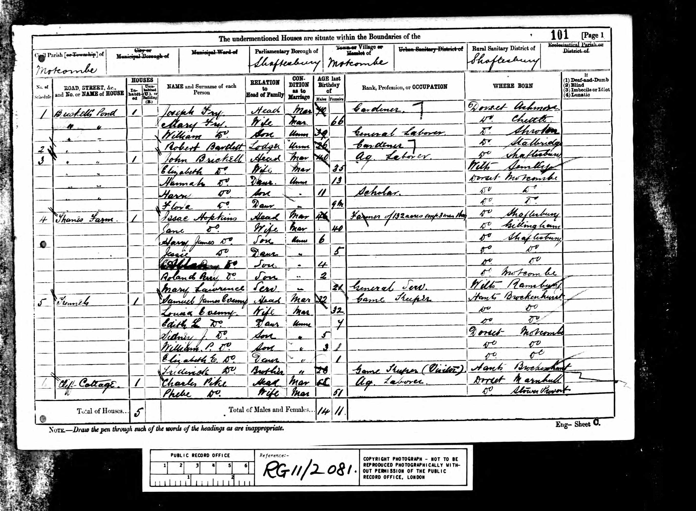 • Lived at: Brickell Pond, 1881, Motcombe, Dorset, England.