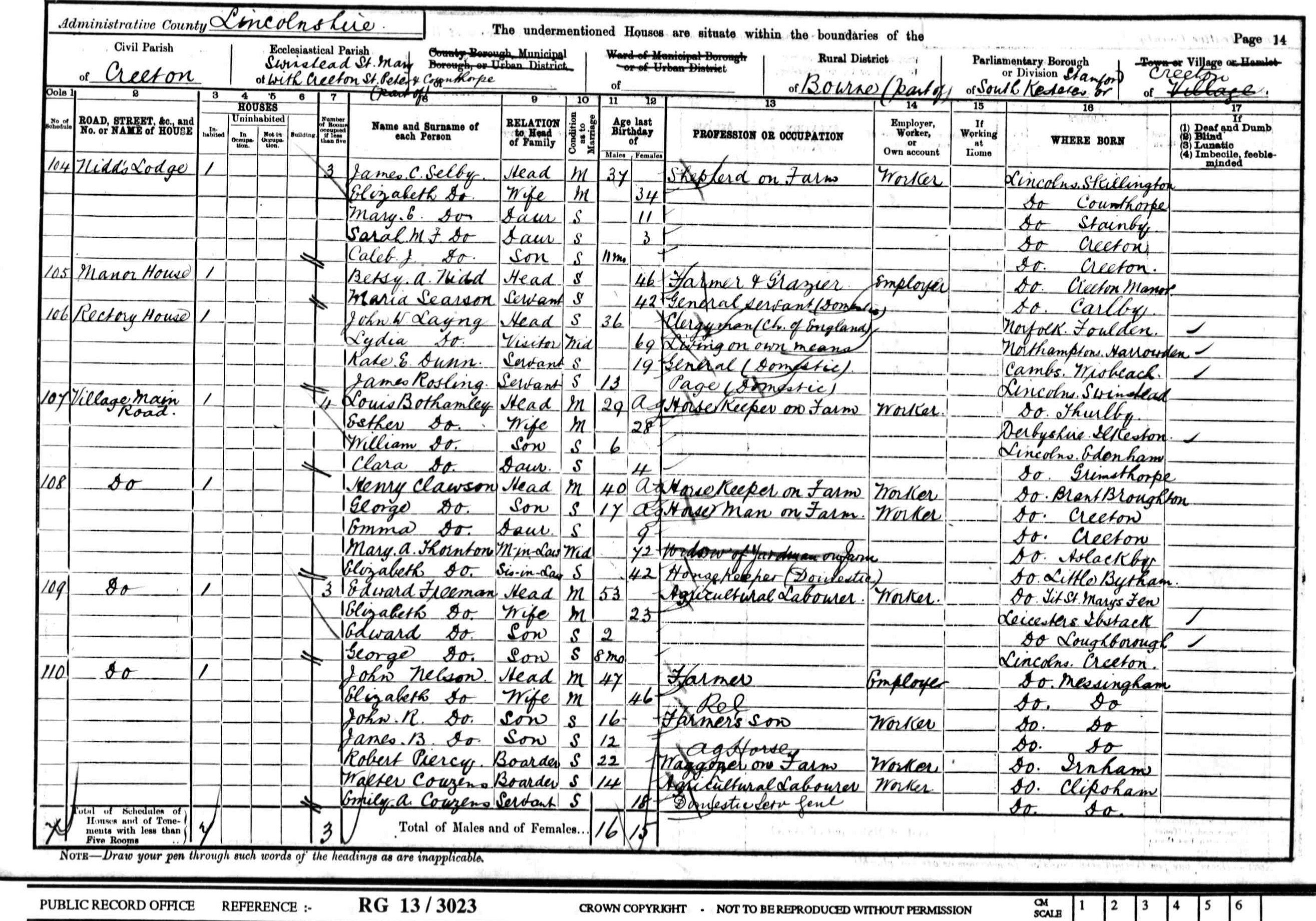 • Lived at: Manor House, 1861-1901, Creeton, Lincolnshire, England. 5 6 7 8
