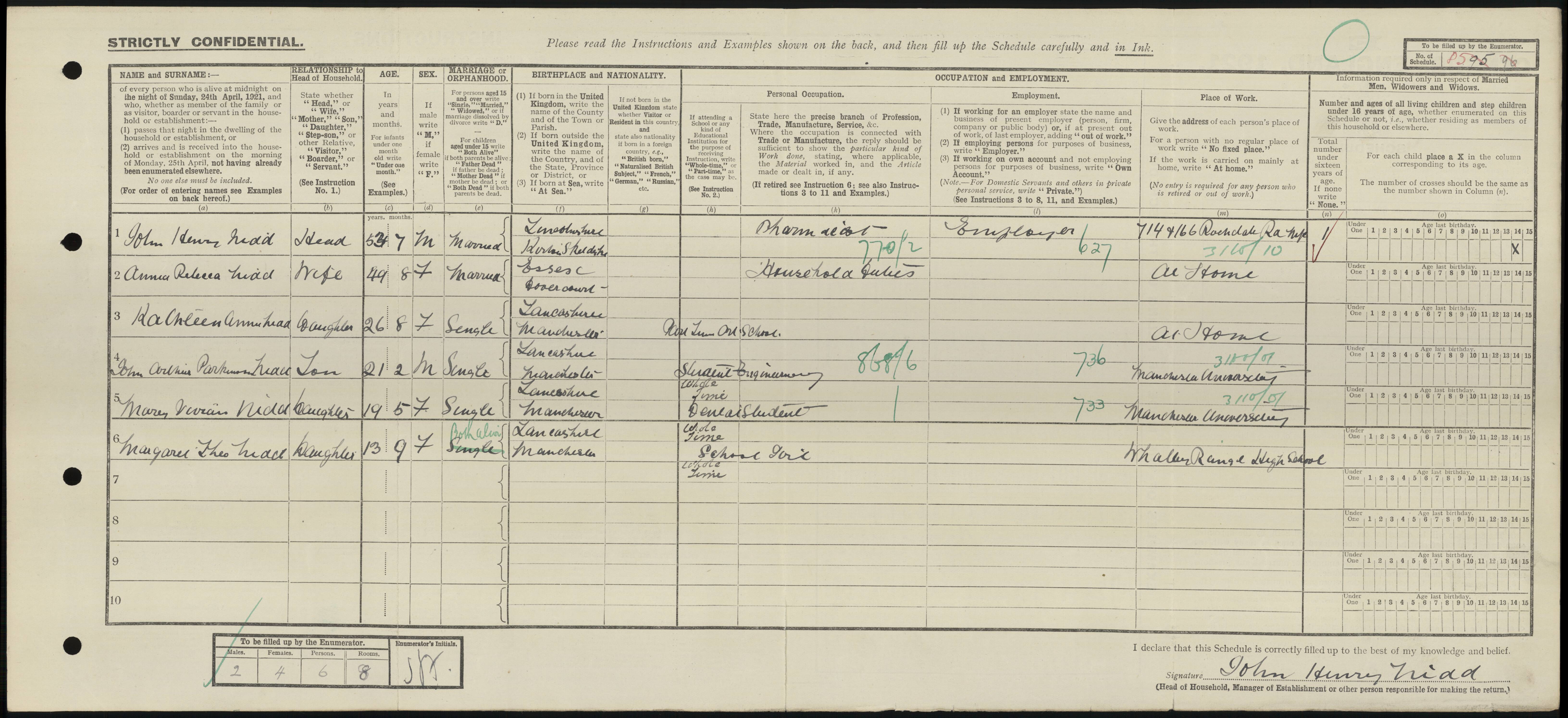 • Lived at: 12 Oak Bank, 1901, Harpurhey, Lancashire. 6 • Occupation: Chemist, 1901-1906, Harpurhey, Lancashire. 6