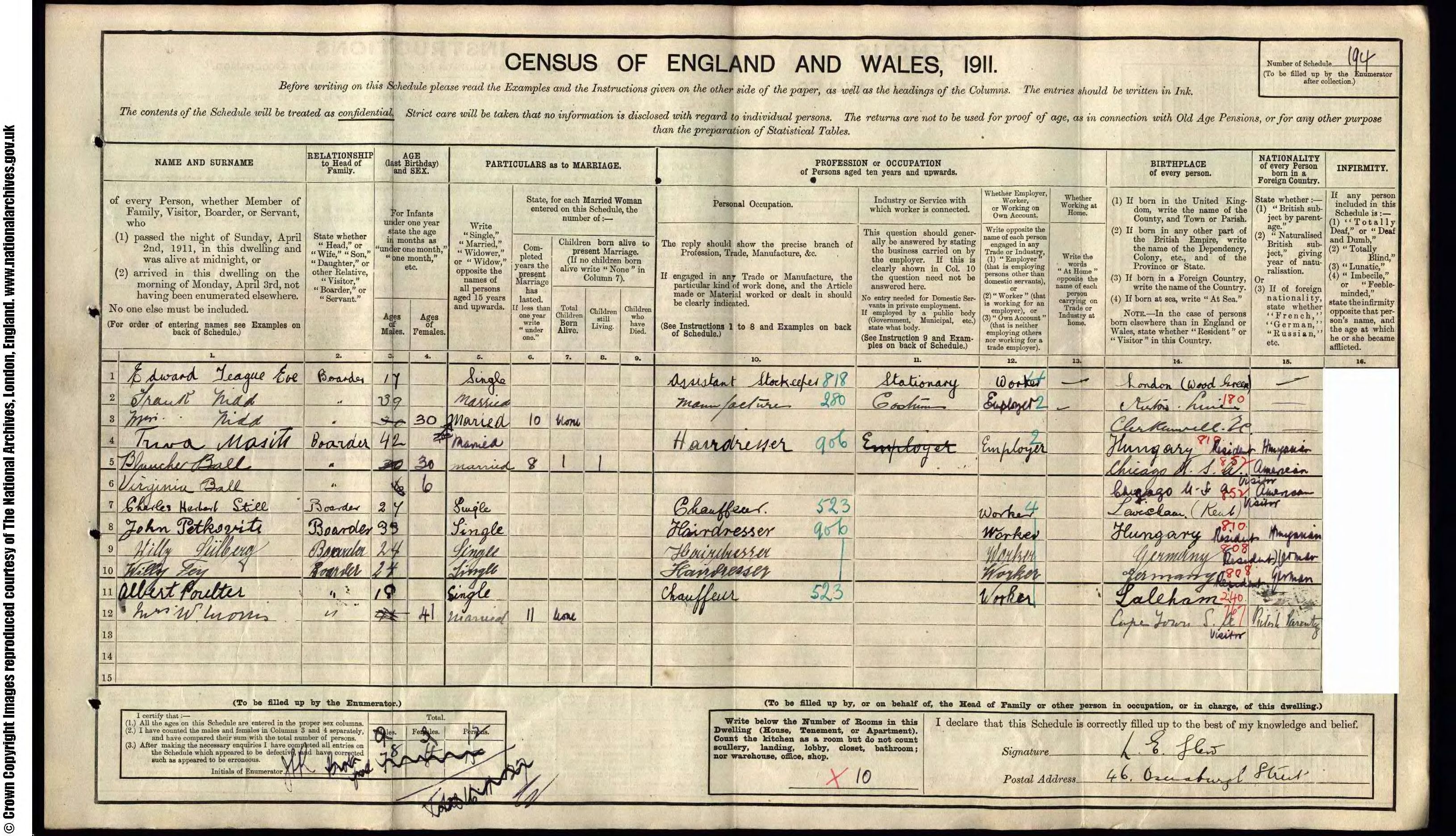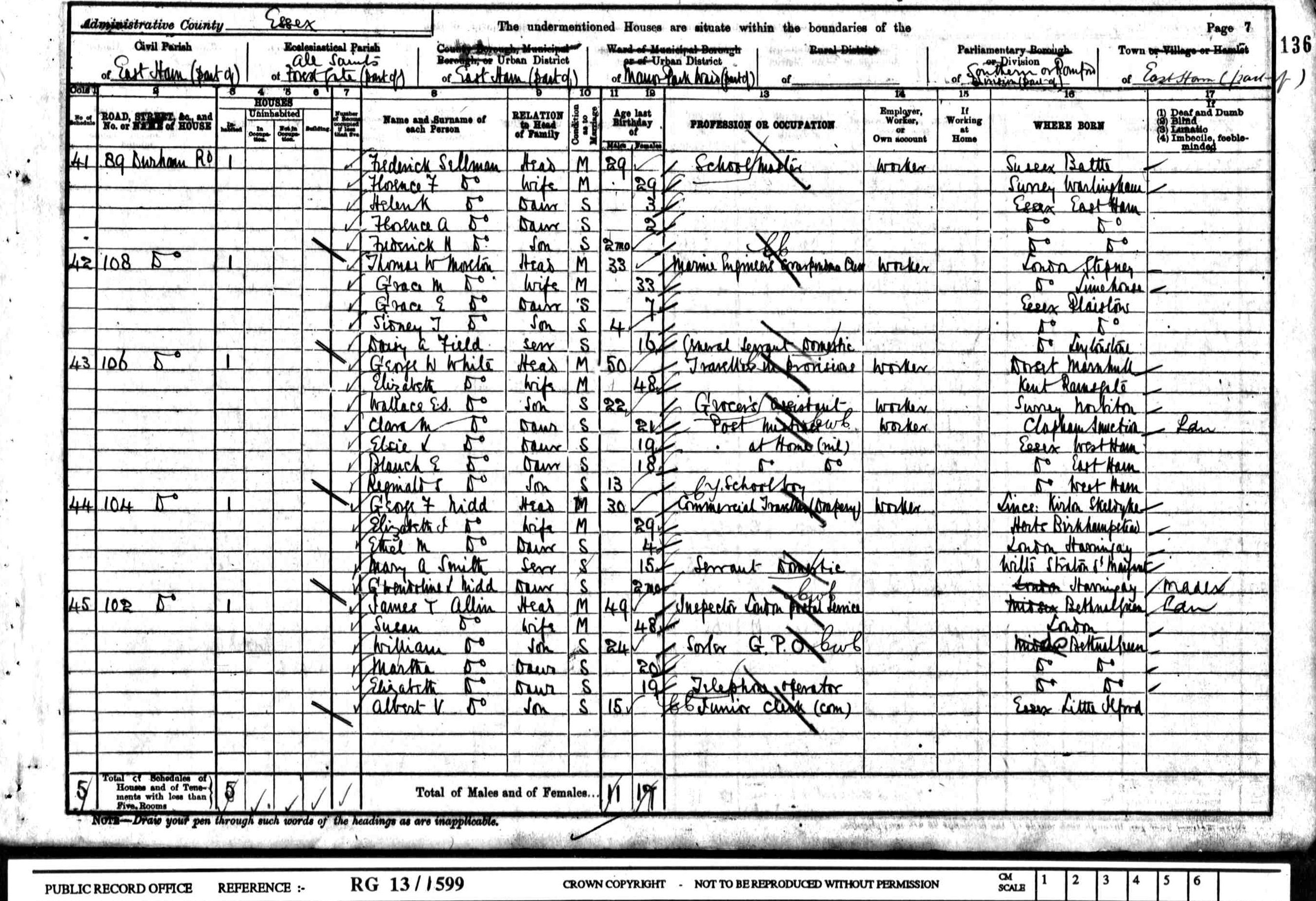 • Occupation: Commercial Traveller (Drapery), 1901, East Ham, Essex & London, England.
