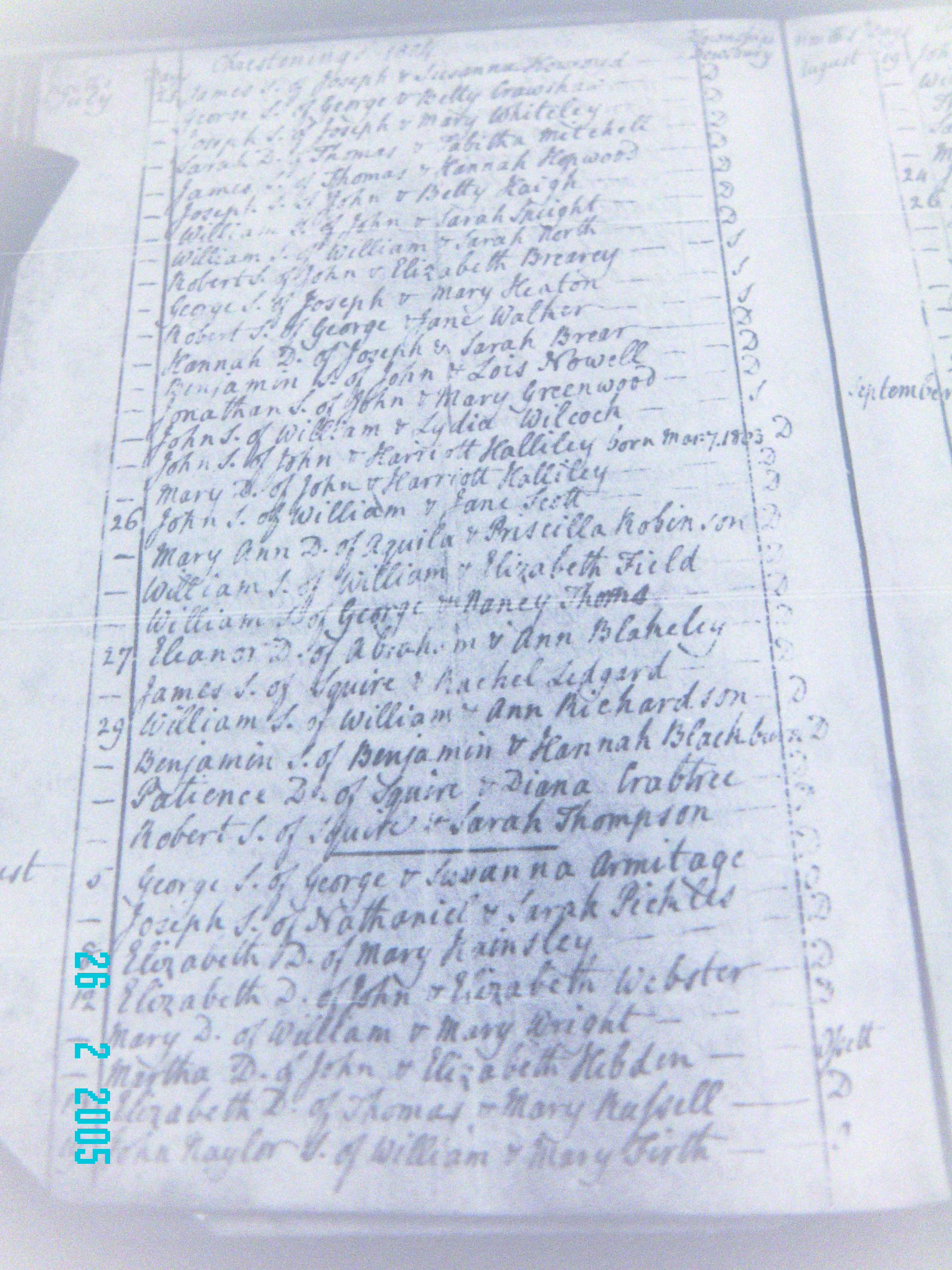 First name(s): Sarah Last name: BAILEY Date of burial: 13 Oct 1804 Age at death: Calculated year of birth: Not known Place of burial: Dewsbury Dedication: All Saints County: Yorkshire (West Riding) Notes: Dewsbury All Saints: Denomination: Anglican Coverage: 1653 - 1859 Number of entries: 33,495 Data provider: Huddersfield & District Family History Society
