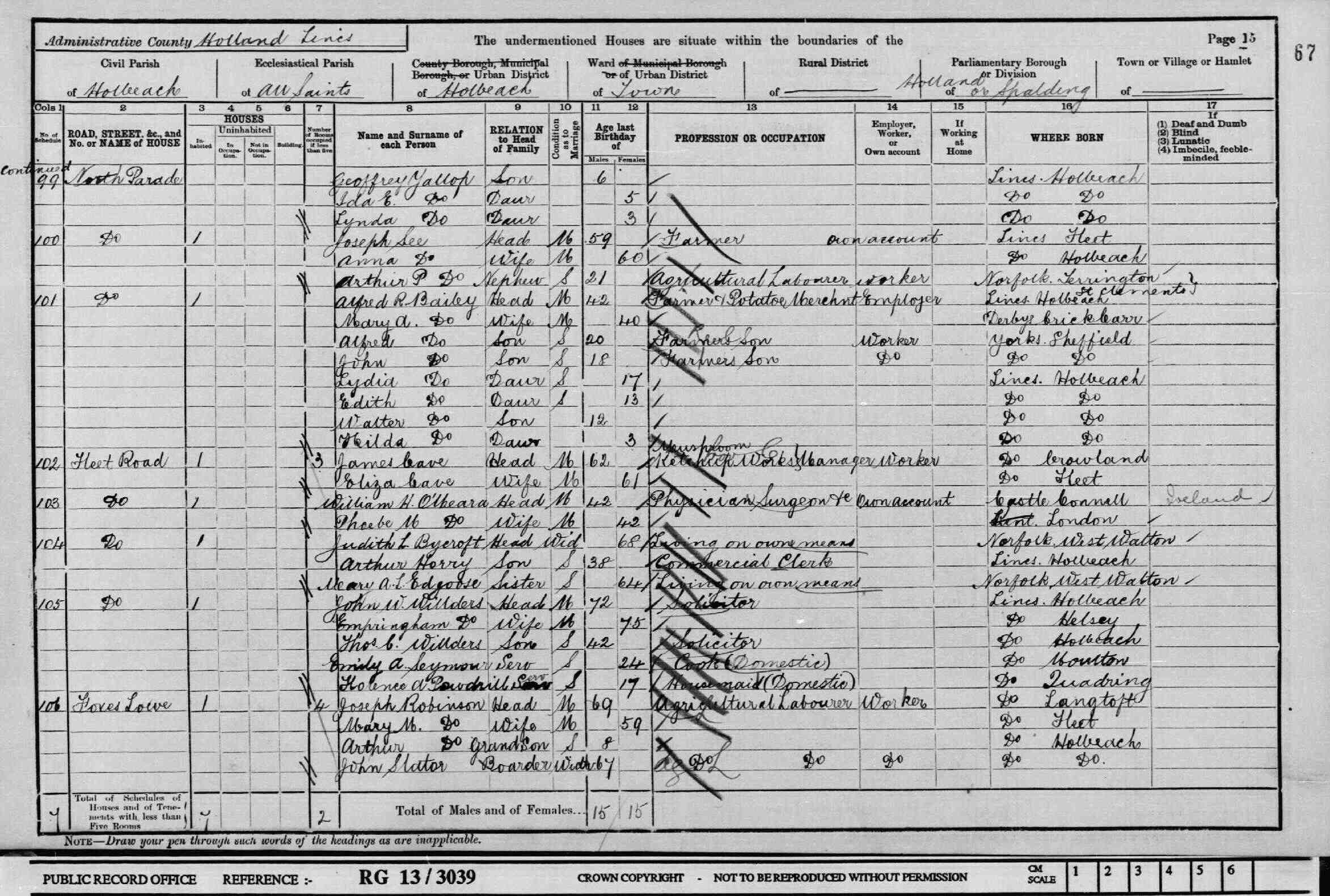 • Lived at: Black House, Fleet Street, 1891, Holbeach, Lincolnshire, England. • Occupation: Solicitor, 1891, Holbeach, Lincolnshire, England.