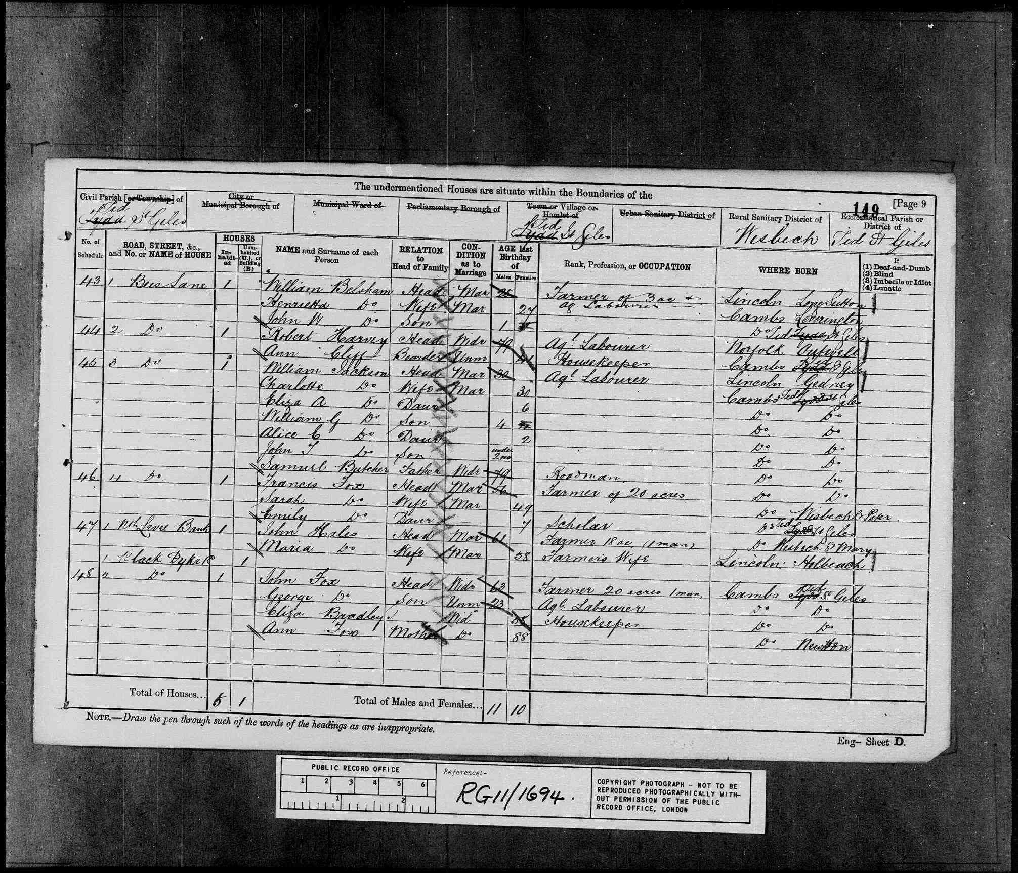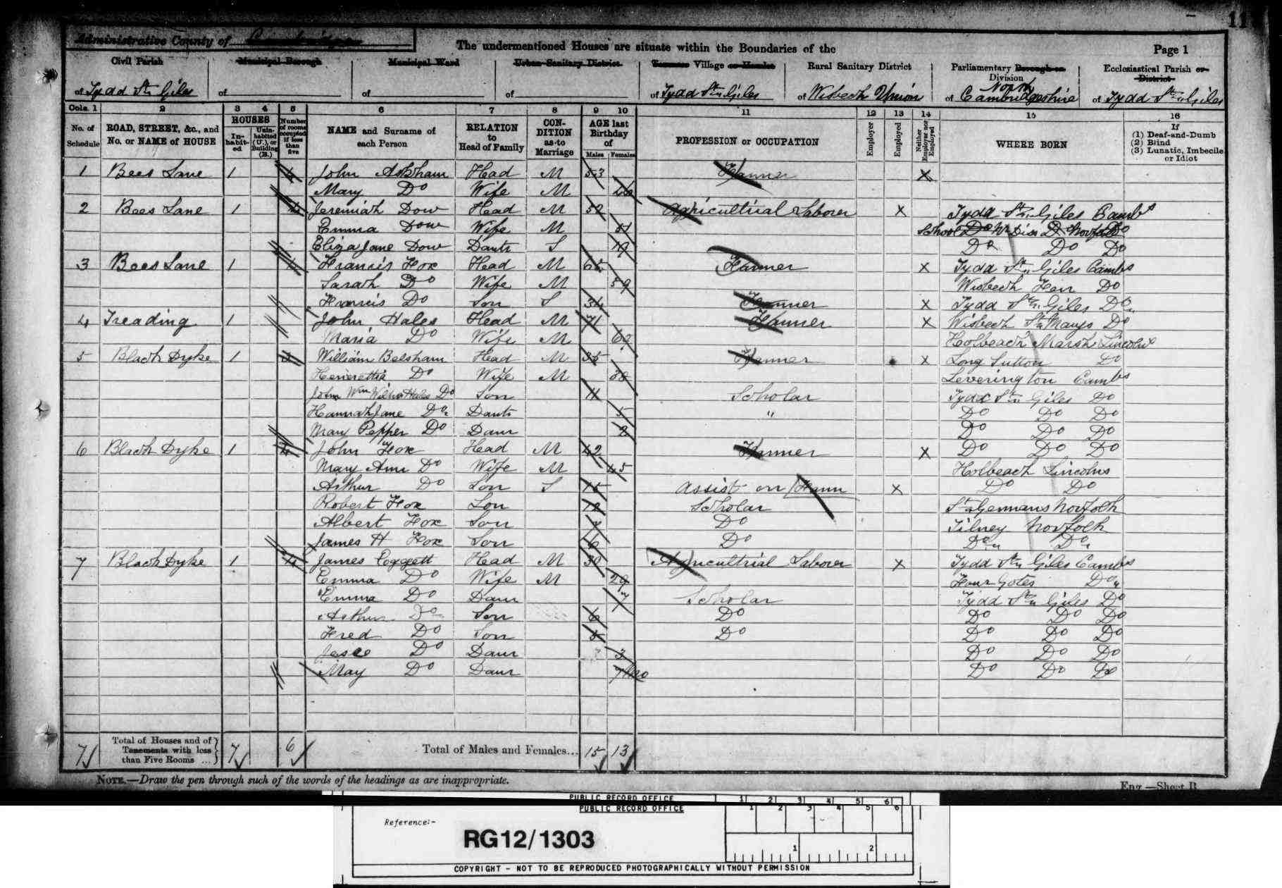 • Lived at: 1 Bees Lane, 1881, Tydd St. Giles, Cambridgeshire.