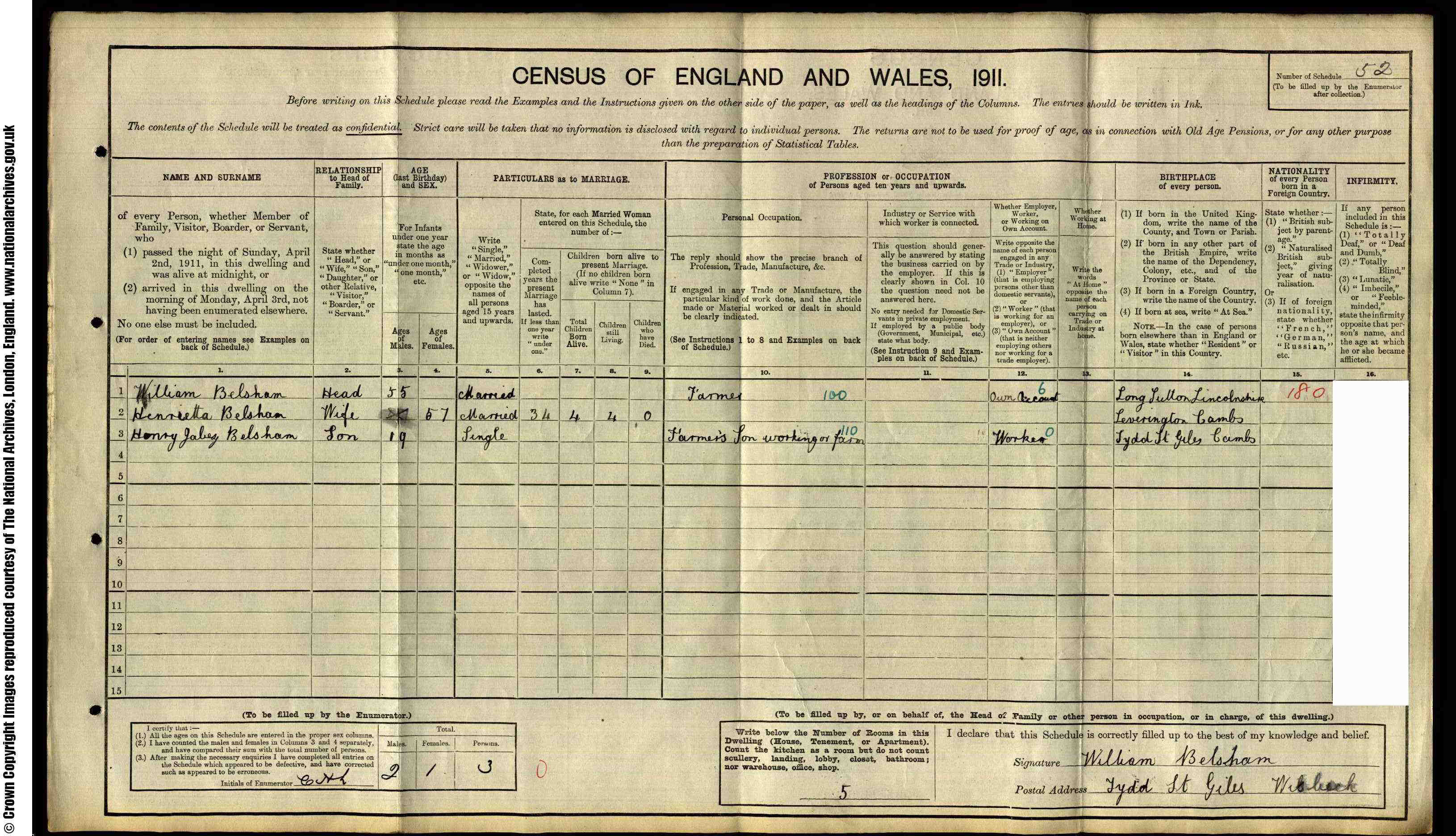 • Lived at: Tydd Fen, 1911, Tydd St Giles, Cambridgeshire.