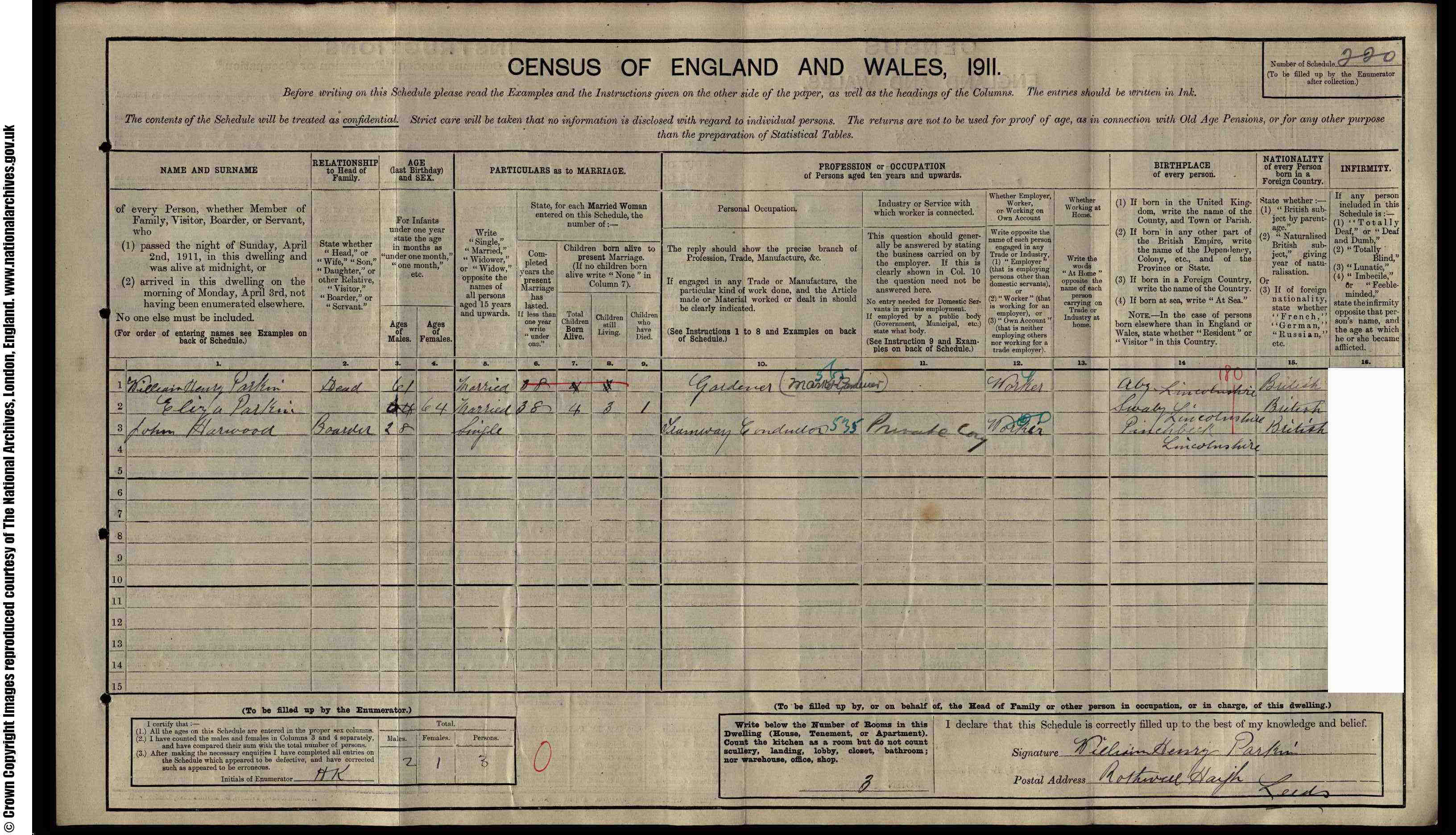 • Boarded: with the Parkins, 1911, Rothwell Haigh, Leeds. • Occupation: Tramway Conductor, 1911, Wakefield, Yorkshire, England. John married Ruth Waker on 15 Dec 1912 in Wakefield, Yorkshire, England. (Ruth Waker was born in 1882 and died in 1960.) |