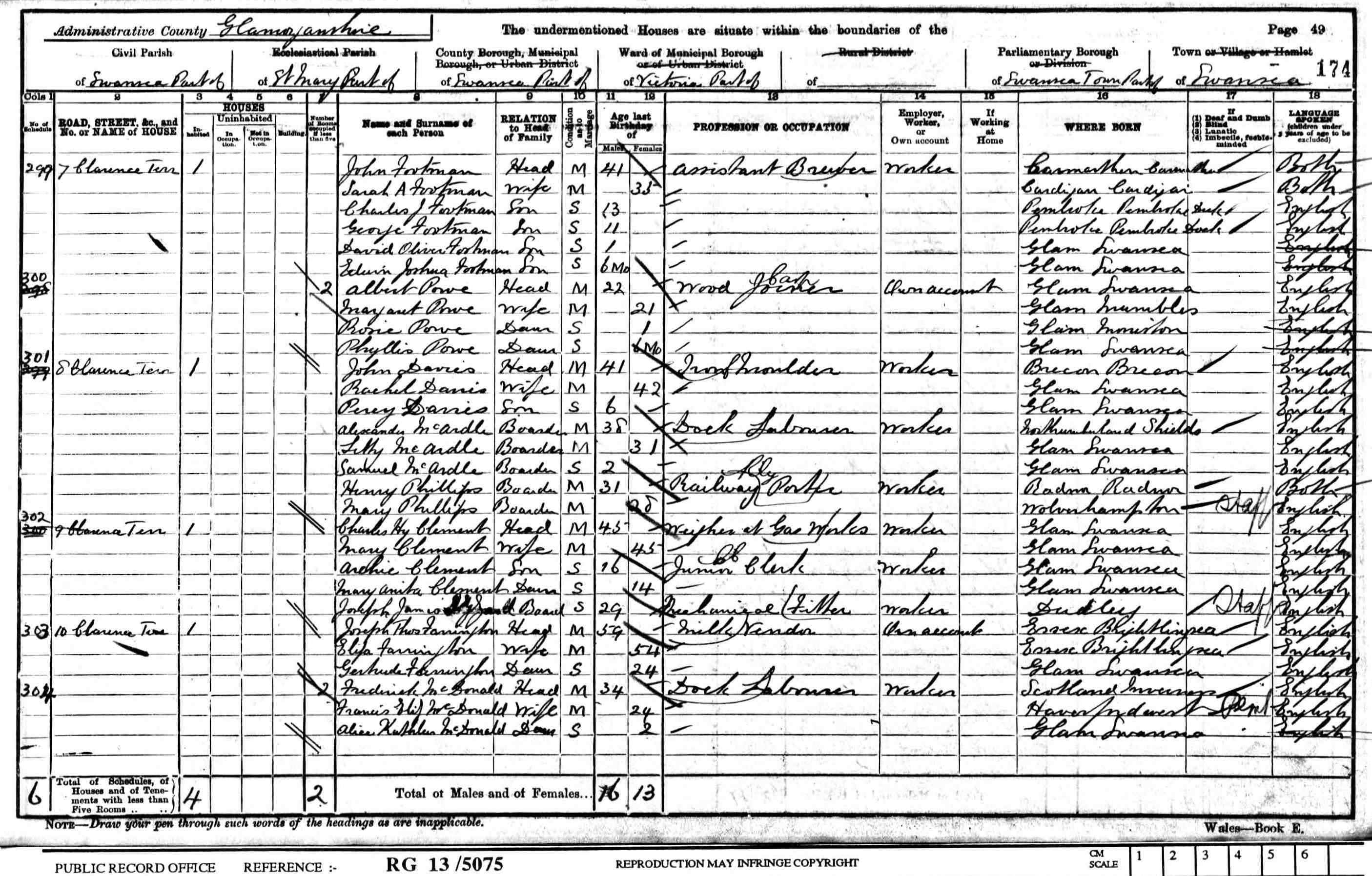 • Lived at: 7 Clarence Terrace, 1901, Swansea, Glamorgan, Wales. 4