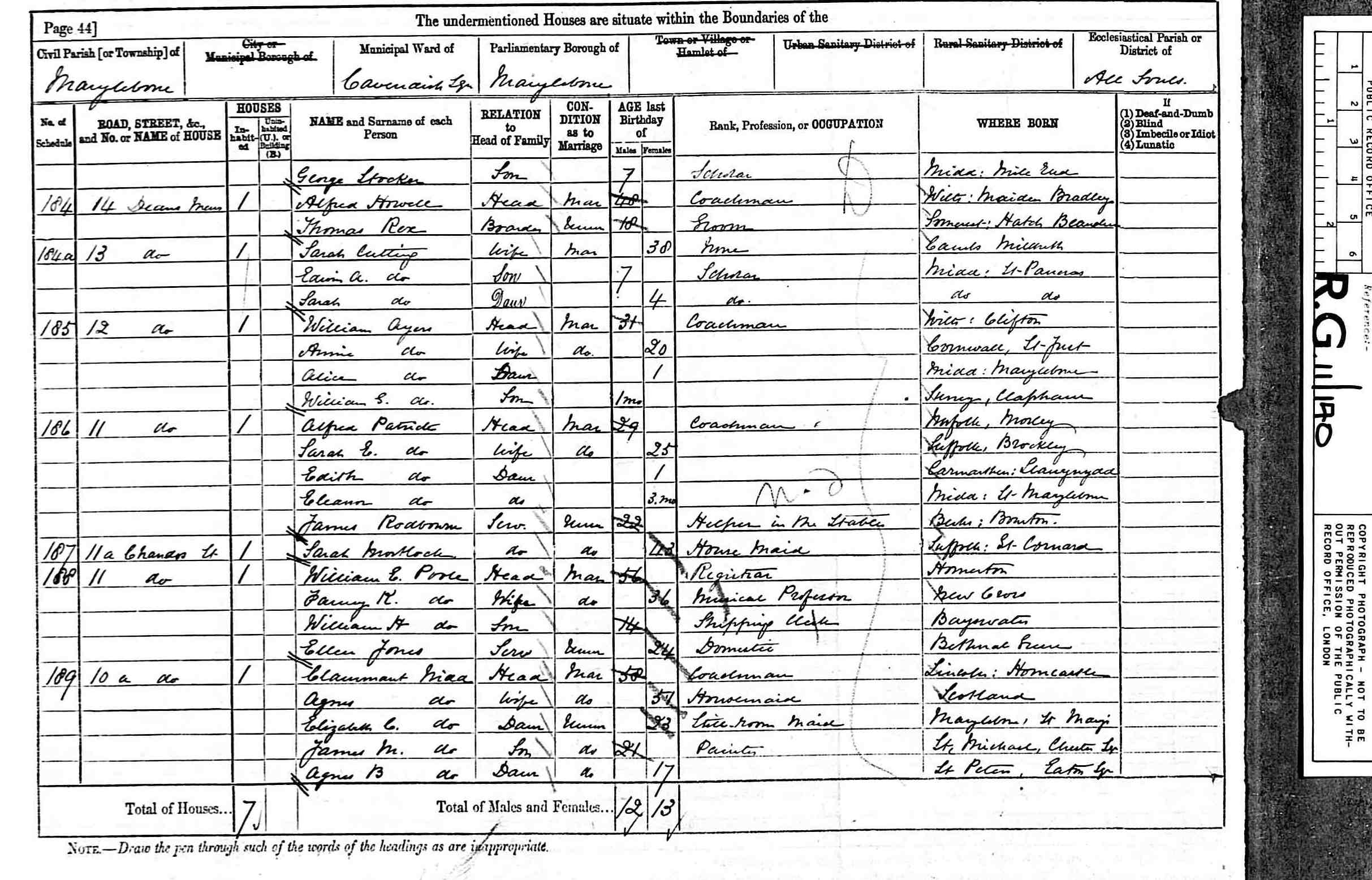 Events • Occupation: Male Servant, 1841, Hainton, Lincolnshire. • Occupation: Servant, 26 Apr 1853, London. • Lived at: 11 Chandos Street, 1881, Marylebone, London, England. 5