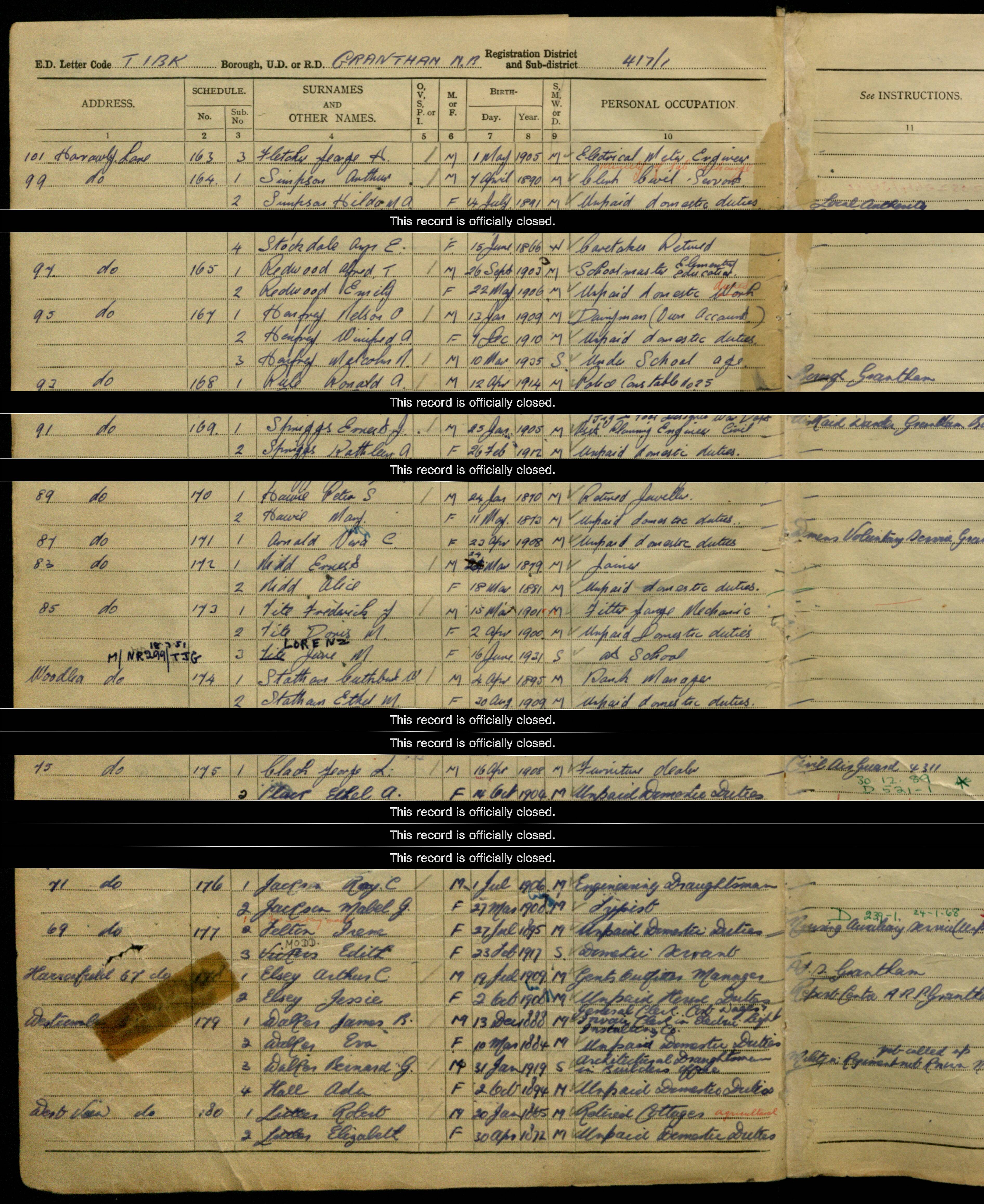• Lived at: 83 Harrowby Lane , Grantham M.B., Lincolnshire (Parts of Kesteven), England, 1939. • Occupation: Joiner, 1939, Grantham, Lincolnshire, England.