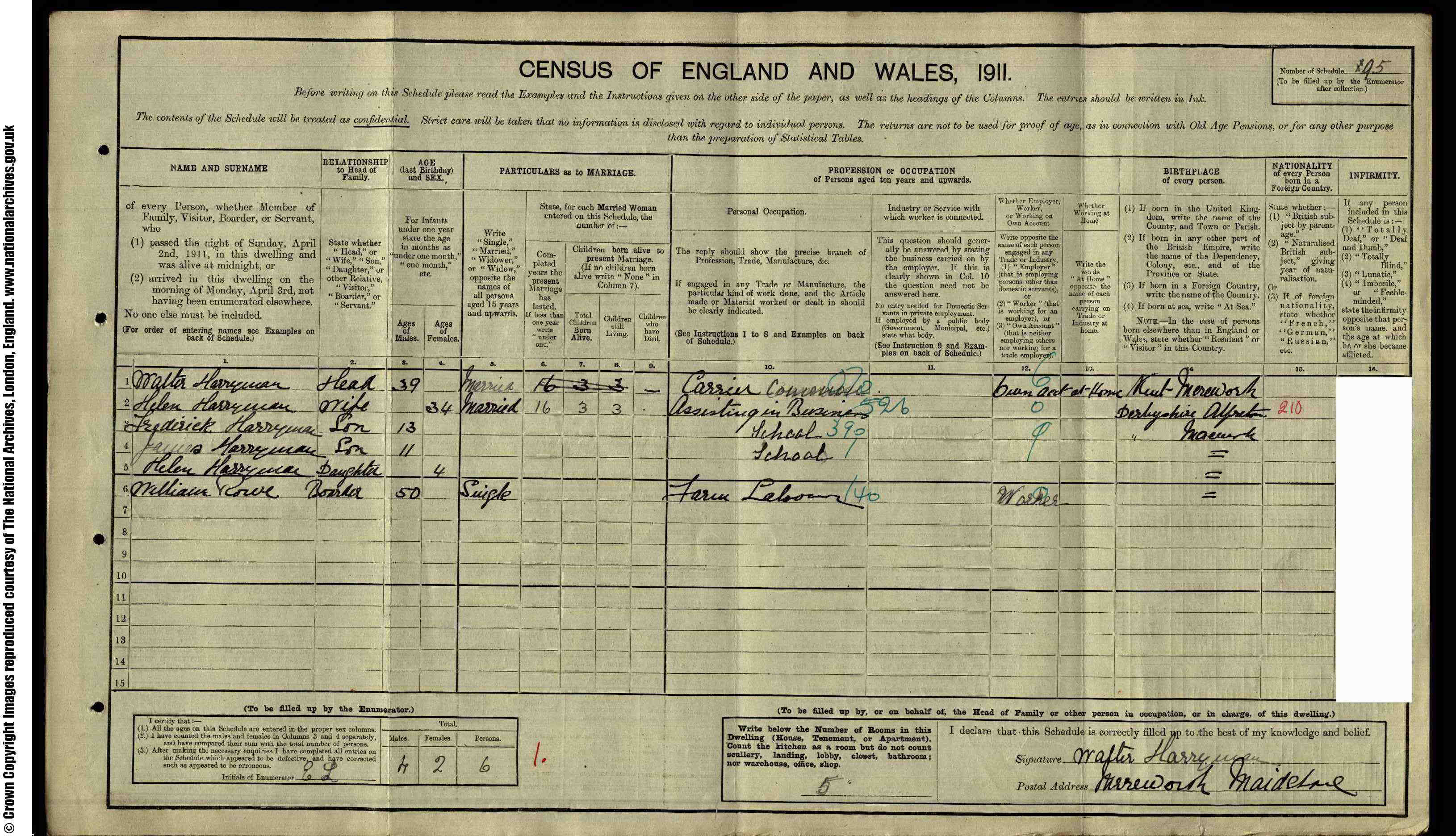 • Lived at: Butcher's Lane, 1911, Mereworth, Kent, England. |