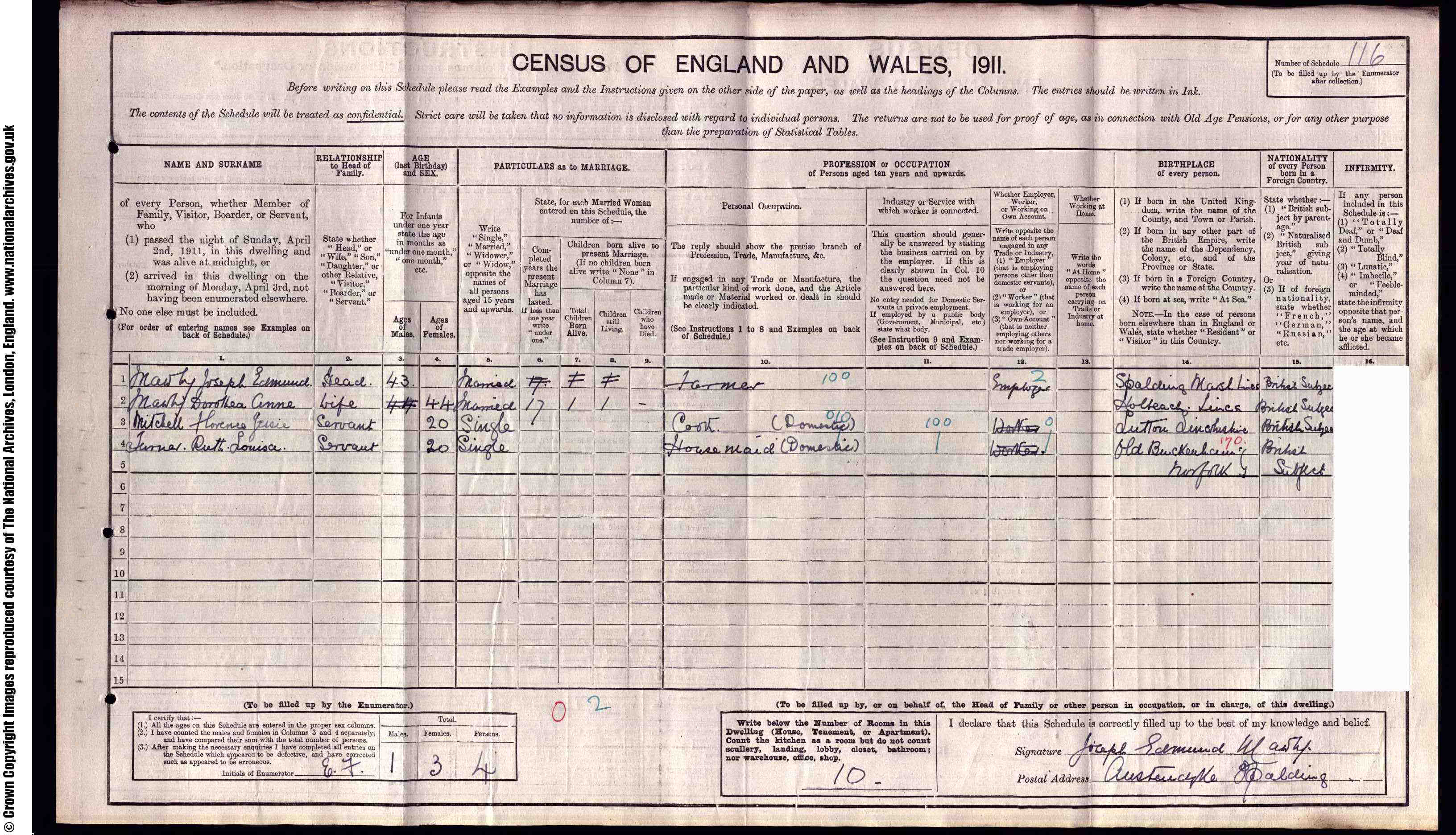 • Lived at: Austerdyke, 1911, Spalding, Lincolnshire, England. Dorothy married Joseph Edmund Mawby Jun Q 1894 in Holbeach, Lincolnshire, England. (Joseph Edmund Mawby was born circa 1867 and died Dec Q 1954 in Spalding, Lincolnshire, England.) |