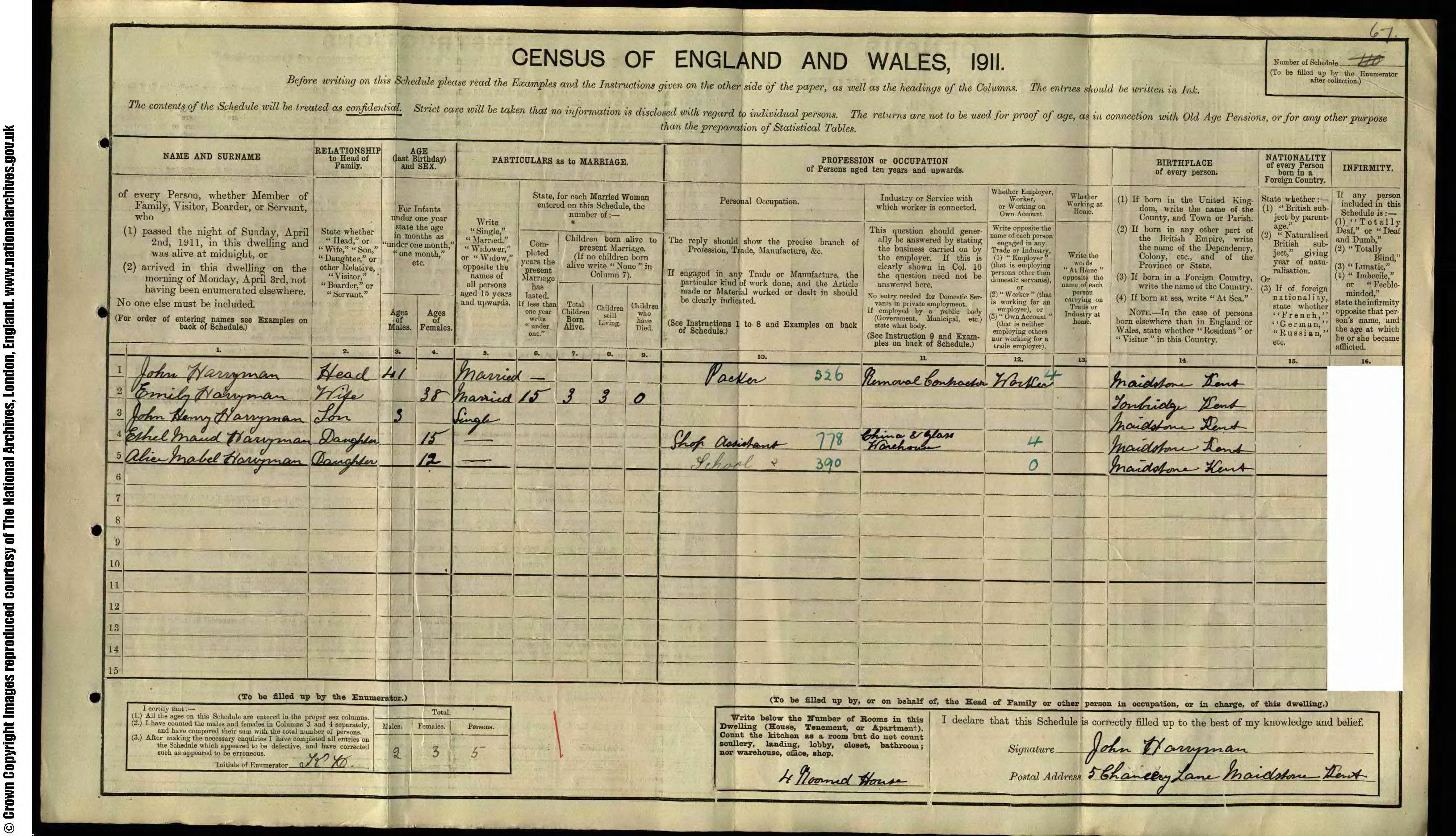 • Lived at: 5 Chancery Lane, 1901-1911, Maidstone, Kent, England. 3