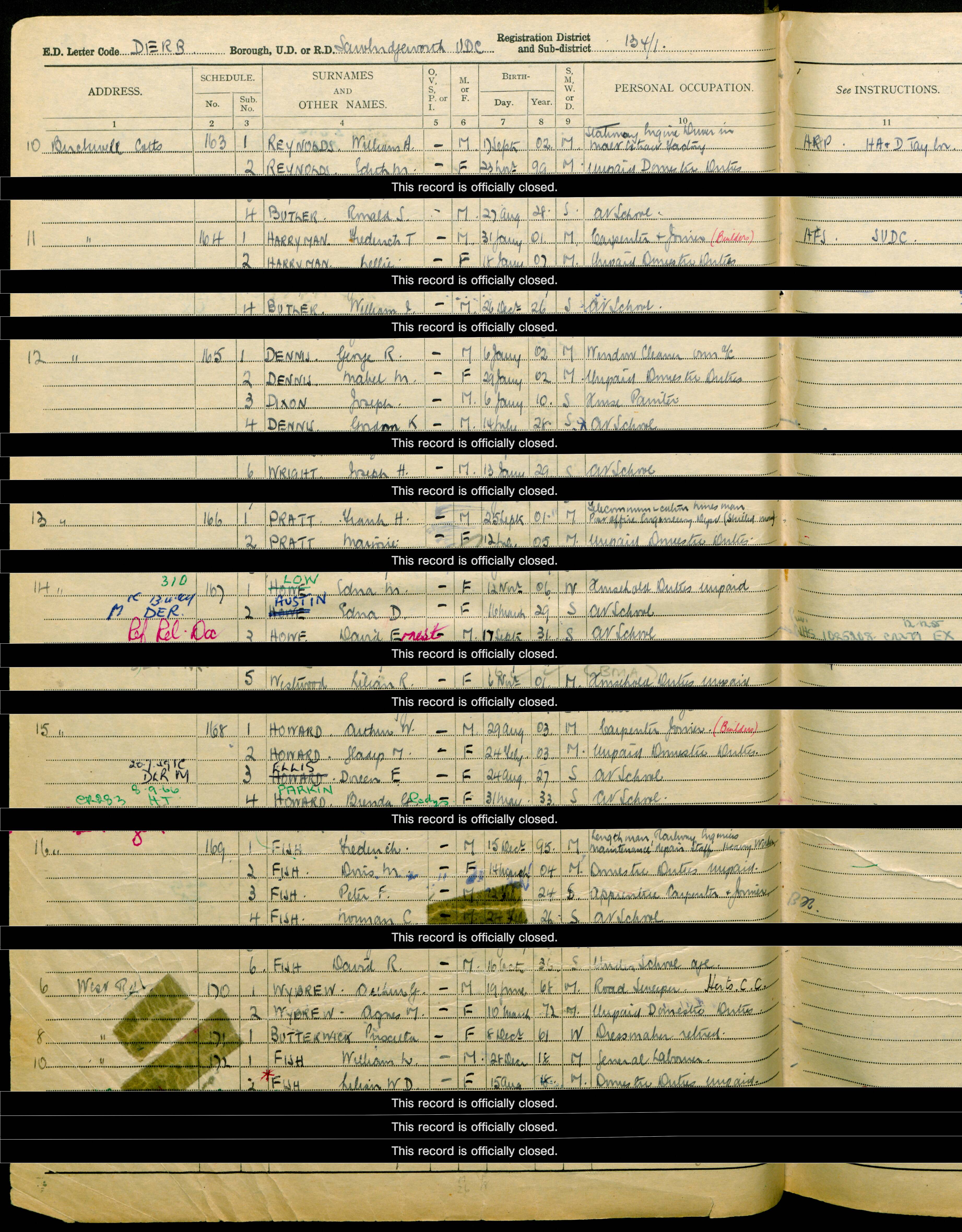 • Lived at: 60 Cambridge Road, 1911, Sawbridgeworth, Herts. • Occupation: Joiner's Apprentice, 1918, Sawbridgeworth Herts. • Enlisted: Royal Air Force, 28 Aug 1918, Suffolk. • Lived at: 11 Birchwell Cotts , 1939, Sawbridgeworth U.D., Hertfordshire, England.