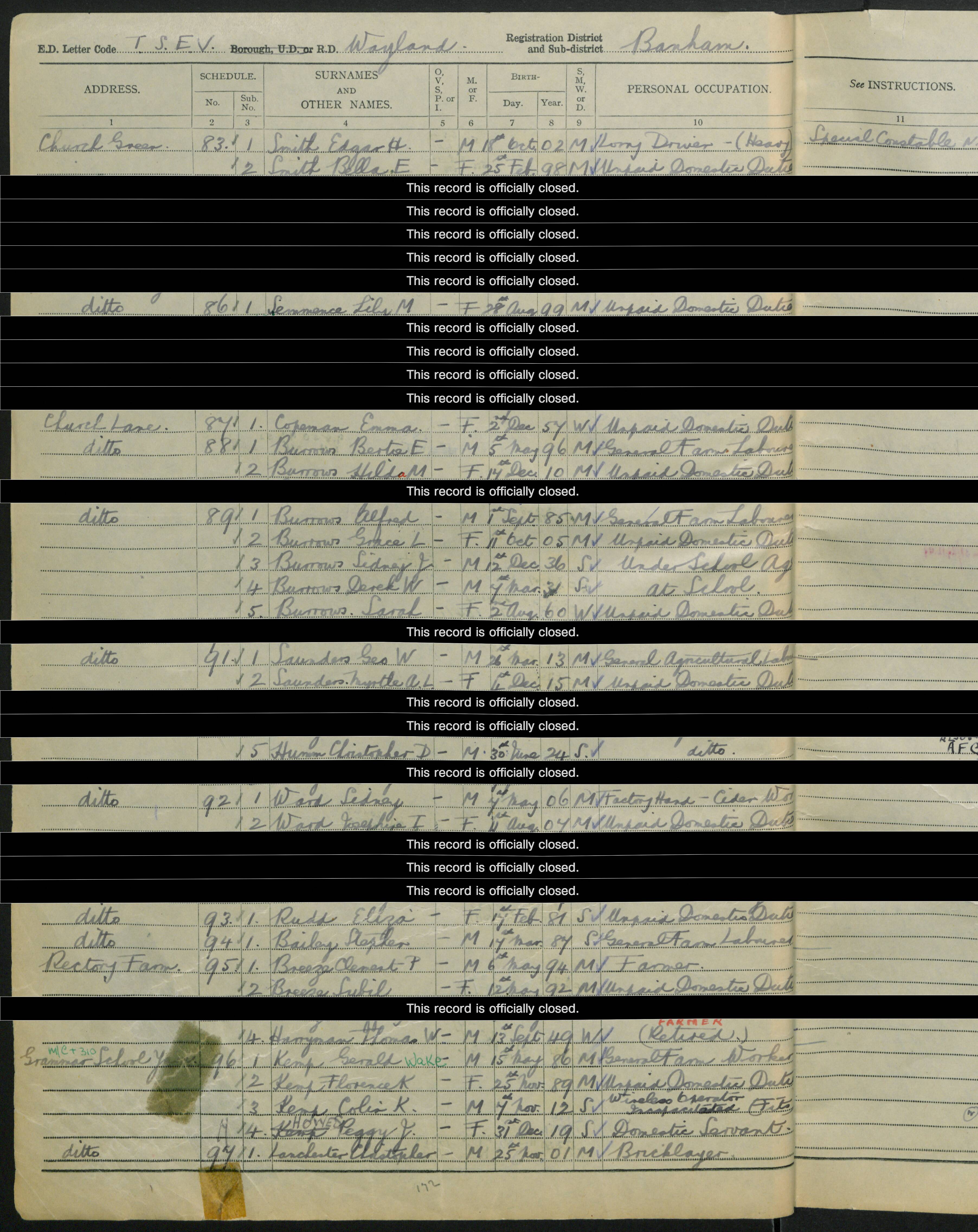 • Lived at: Tibenham, Tivetshall, 1921, Norwich, Norfolk, England.