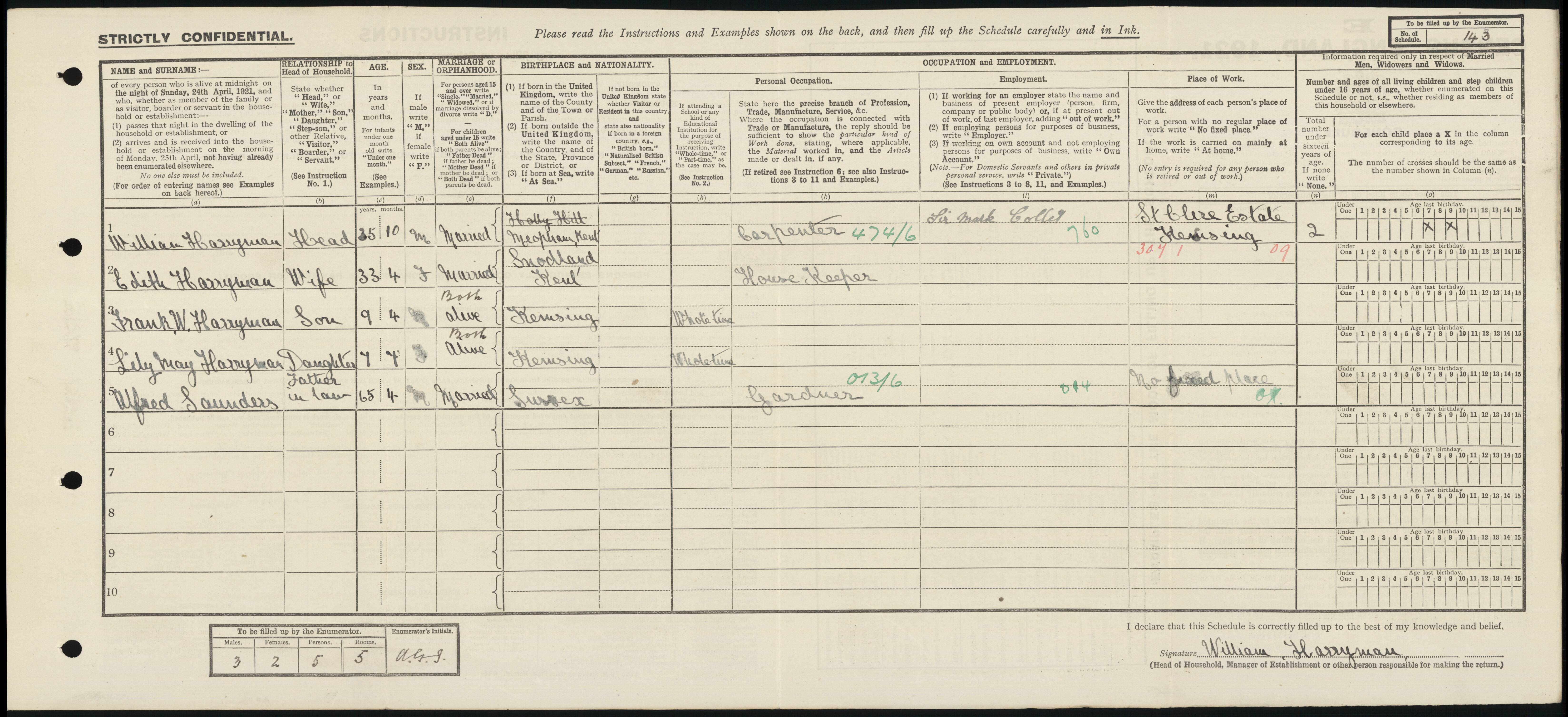 • Lived at: North Lodge, 1911, Kemsing. • Occupation: Carpenter, 1911, Kemsing.