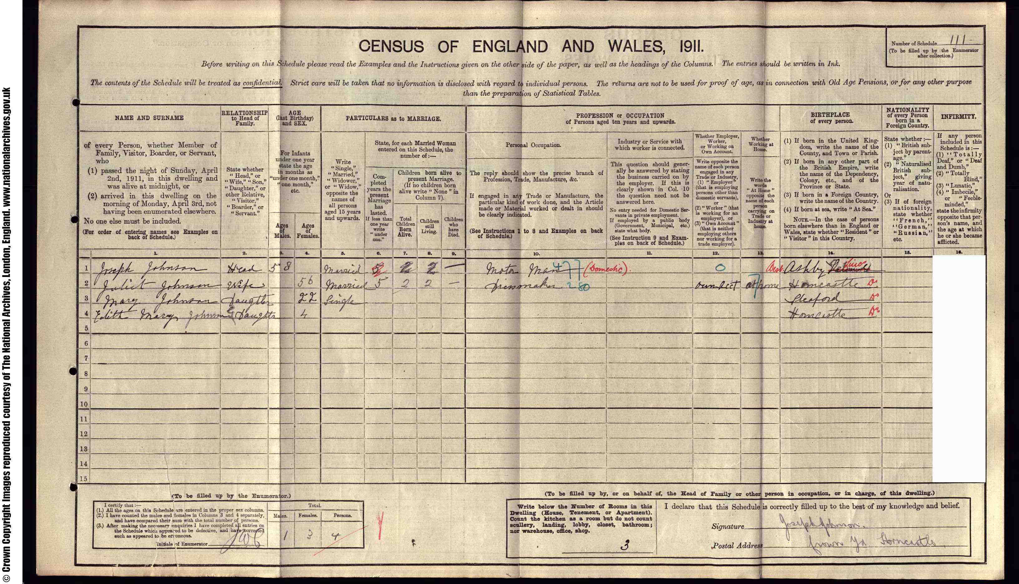 • Lived at: 45 West Street, 1921, Horncastle, Lincolnshire, England. Juliet had a relationship with. Juliet next married Joseph Johnson Mar Q 1906 in Horncastle, Lincolnshire, England. (Joseph Johnson was born circa 1853 in West Ashby and died in 1915 in Horncastle, Lincolnshire, England.) |