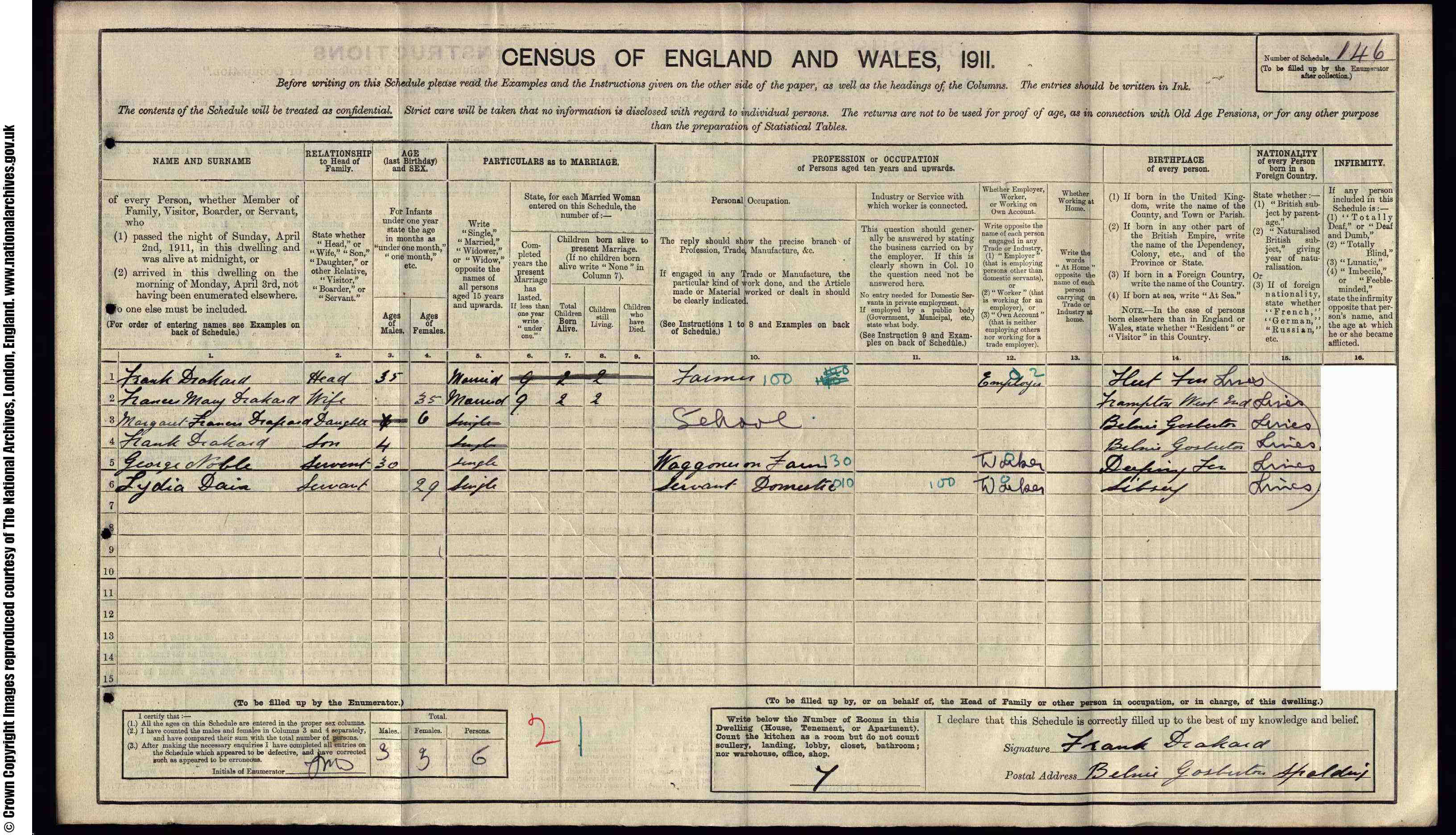 • Occupation: Farmer, 1911, Gosberton, Lincolnshire, England.
