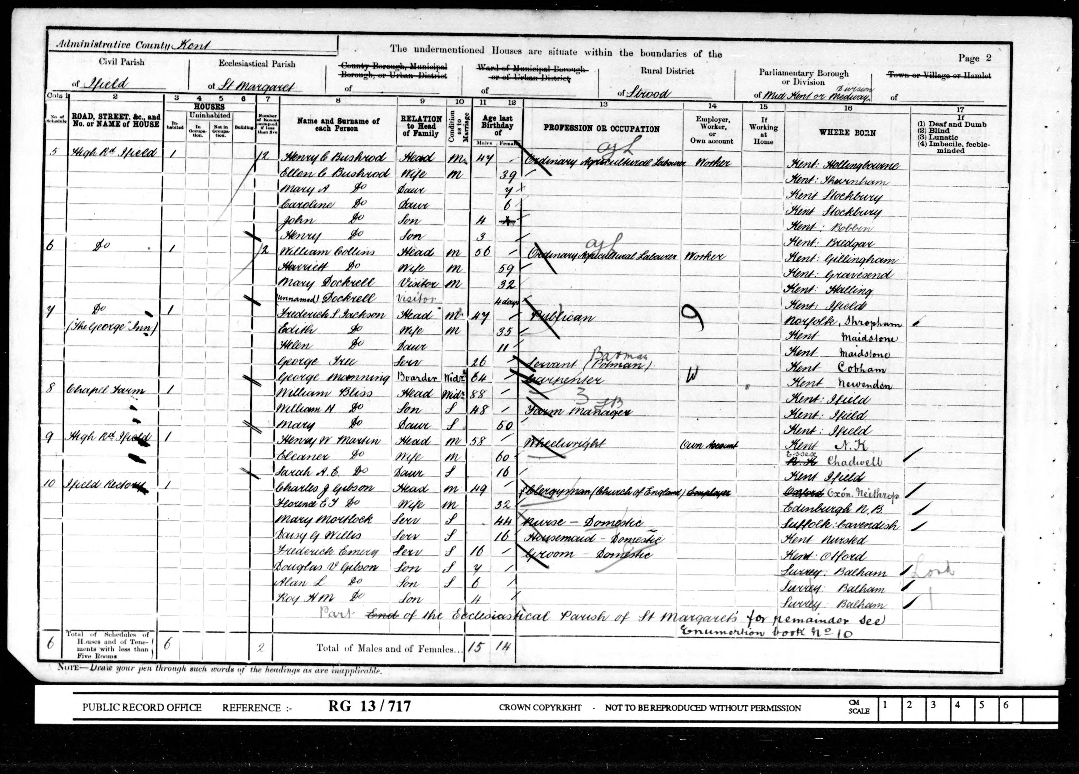 1 (1881 English and Welsh Census(London, TNA/Ancestry.co.uk, 1982) , Web site showing copies of original enumerator schedules) ID: CEN 1881, CEN 1881 rg11 877 page 2. Repository: Not Given. Cit. Date: 29 Oct 2006. Cit. ID: CEN 1881 rg11 877 page 2. Surety: 2.