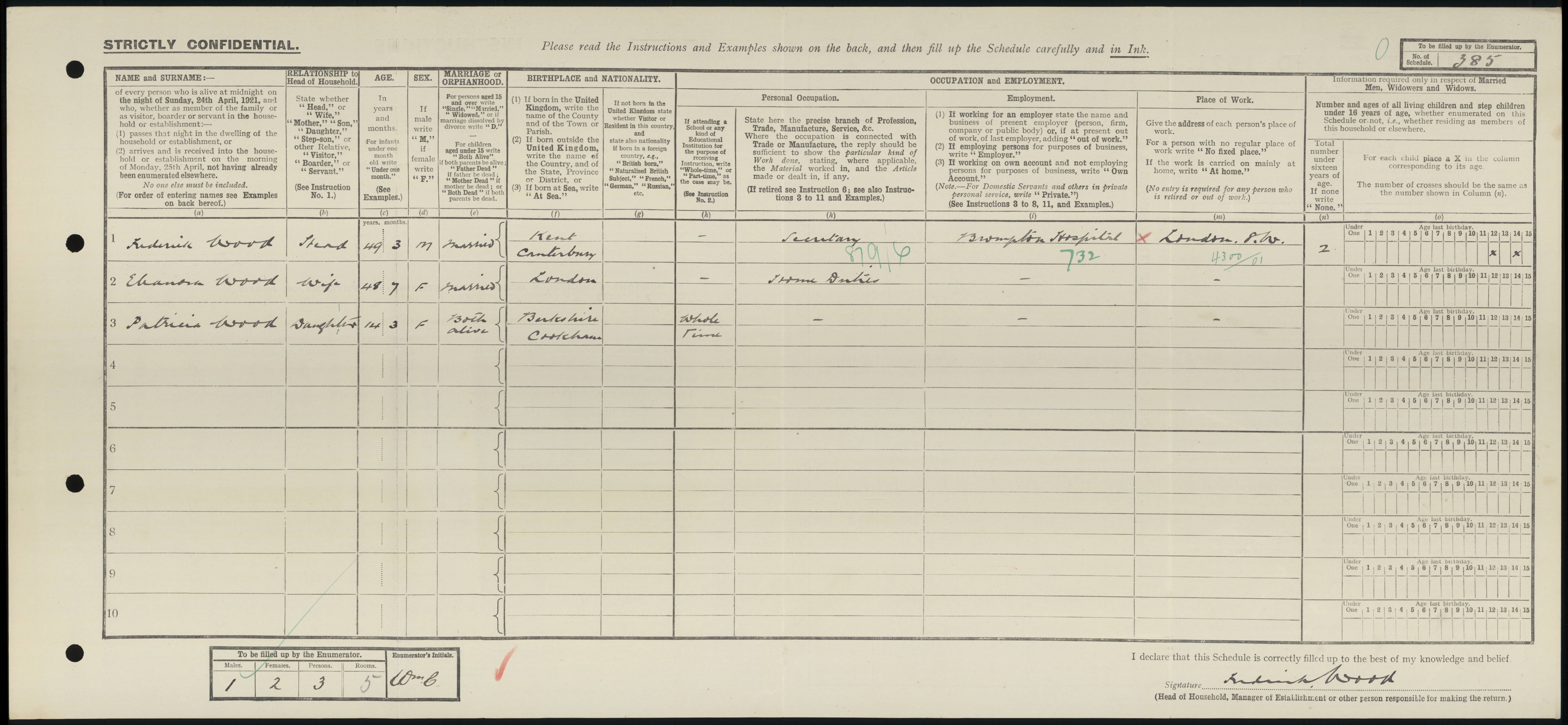 • Lived at: Dean House, 1911, Cookham Deane. • Occupation: Secretary (Hospital), 1911, Cookham.