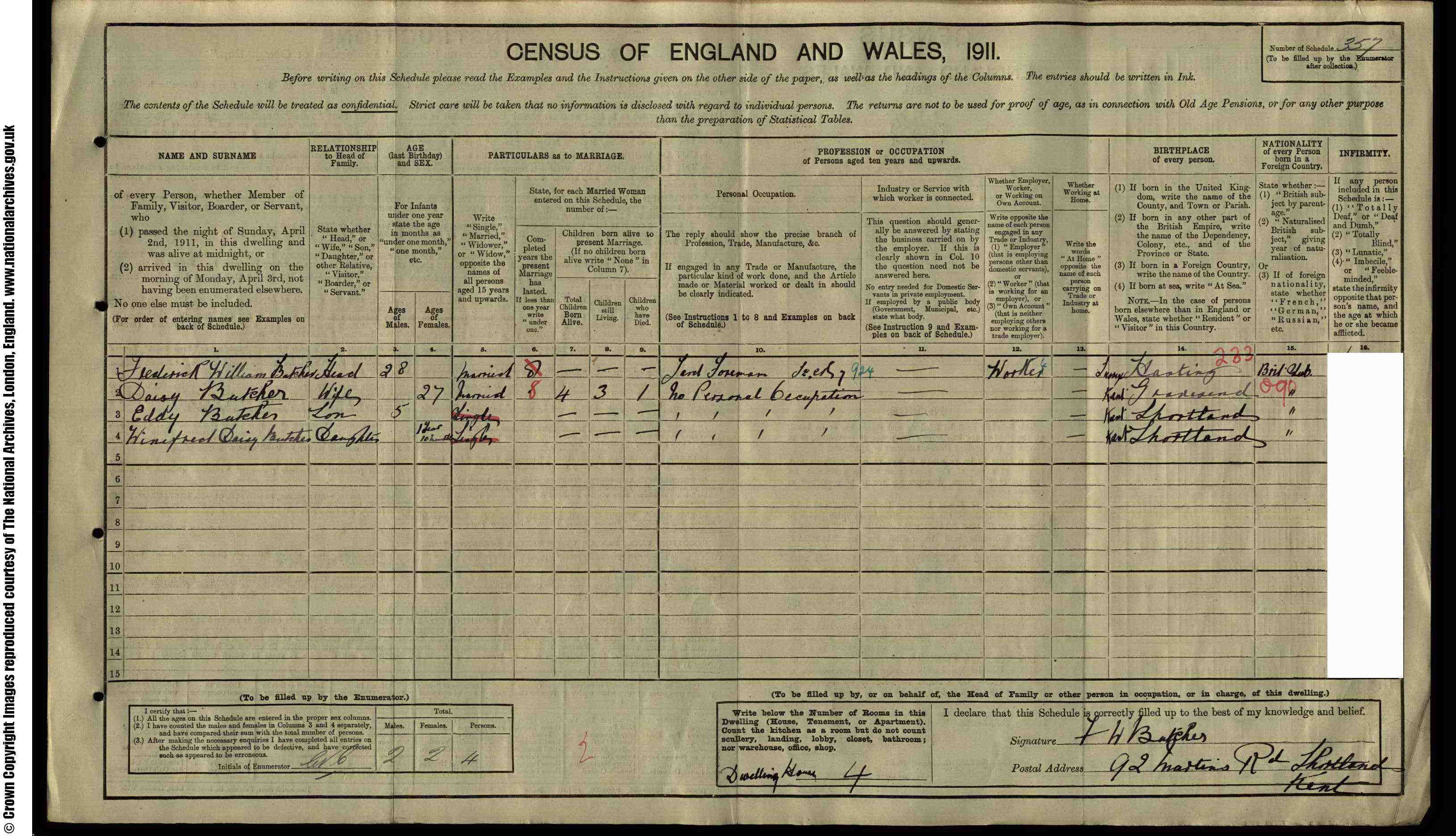 • Lived at: 92 Martins Road, 1911, Stortland, Kent.