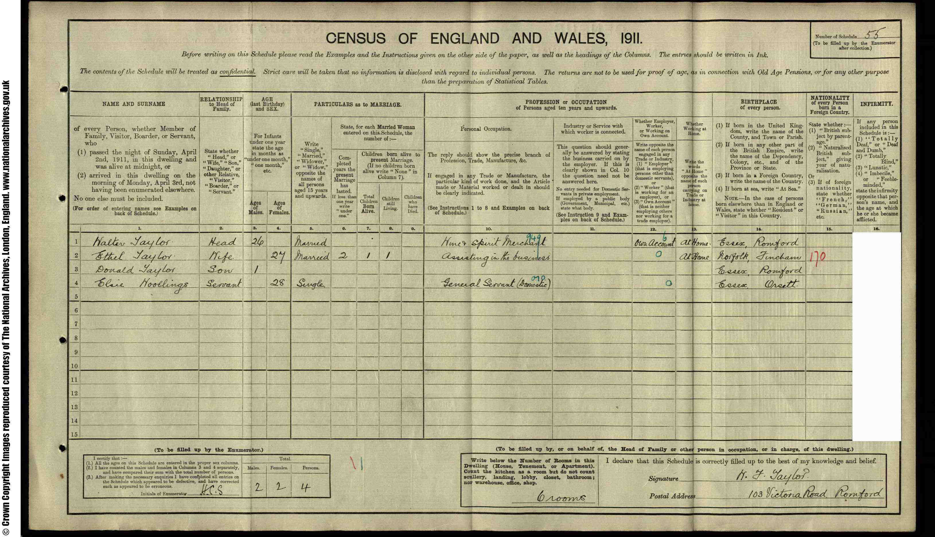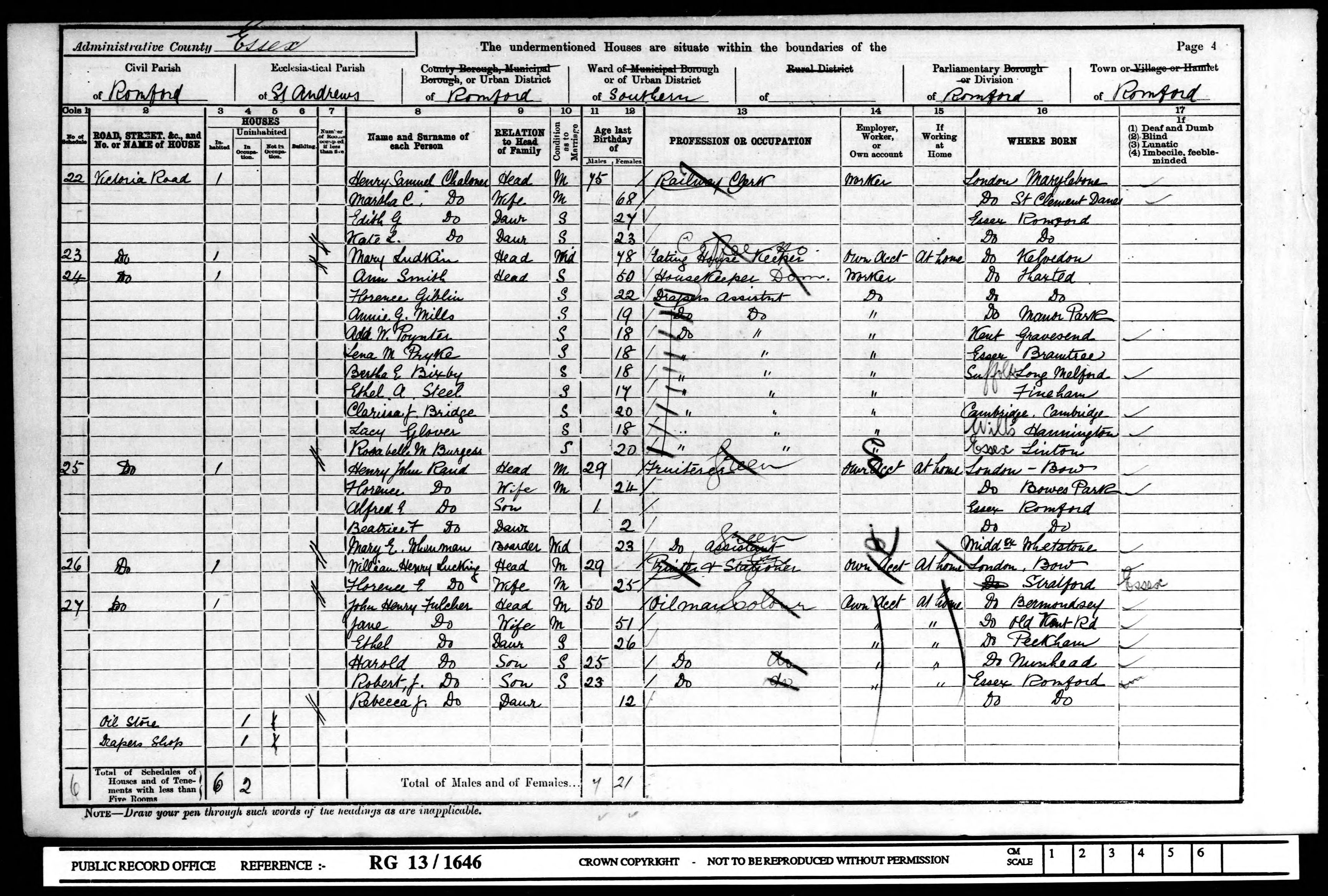 • Lived at: Victoria Road, 1901, Romford, Essex, England. • Occupation: Drapers Asst, 1901, Romford, Essex, England.