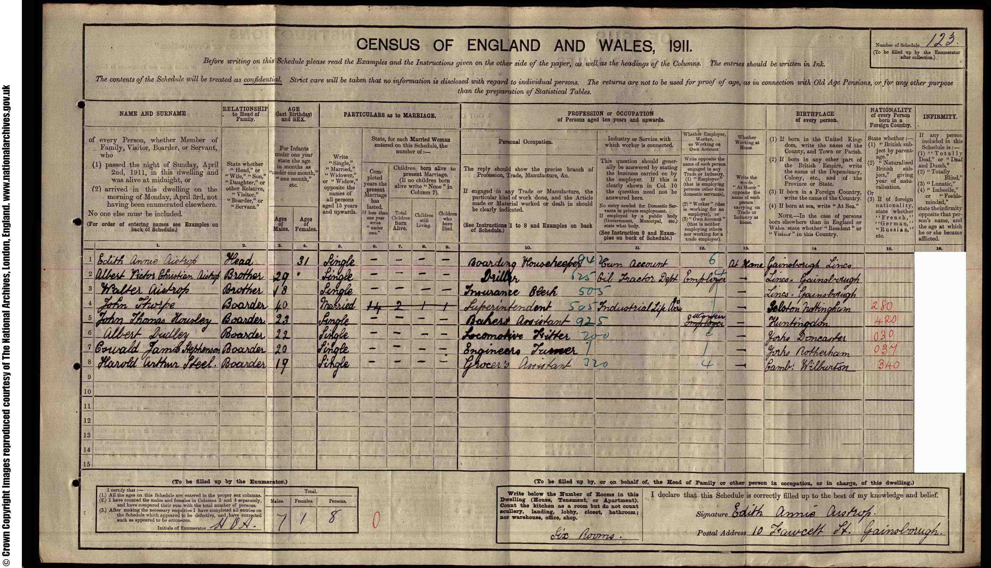 • Occupation: Grocer's Assistant, 1911, Gainsborough, Lincolnshire, England.