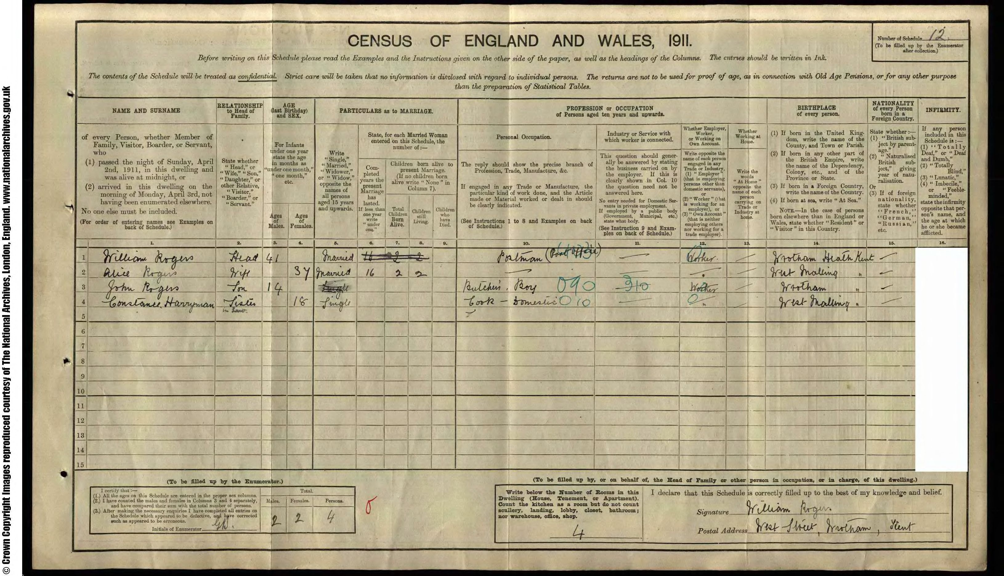 • Occupation: Cook Domestic, 1911, Wrotham, Kent, England.