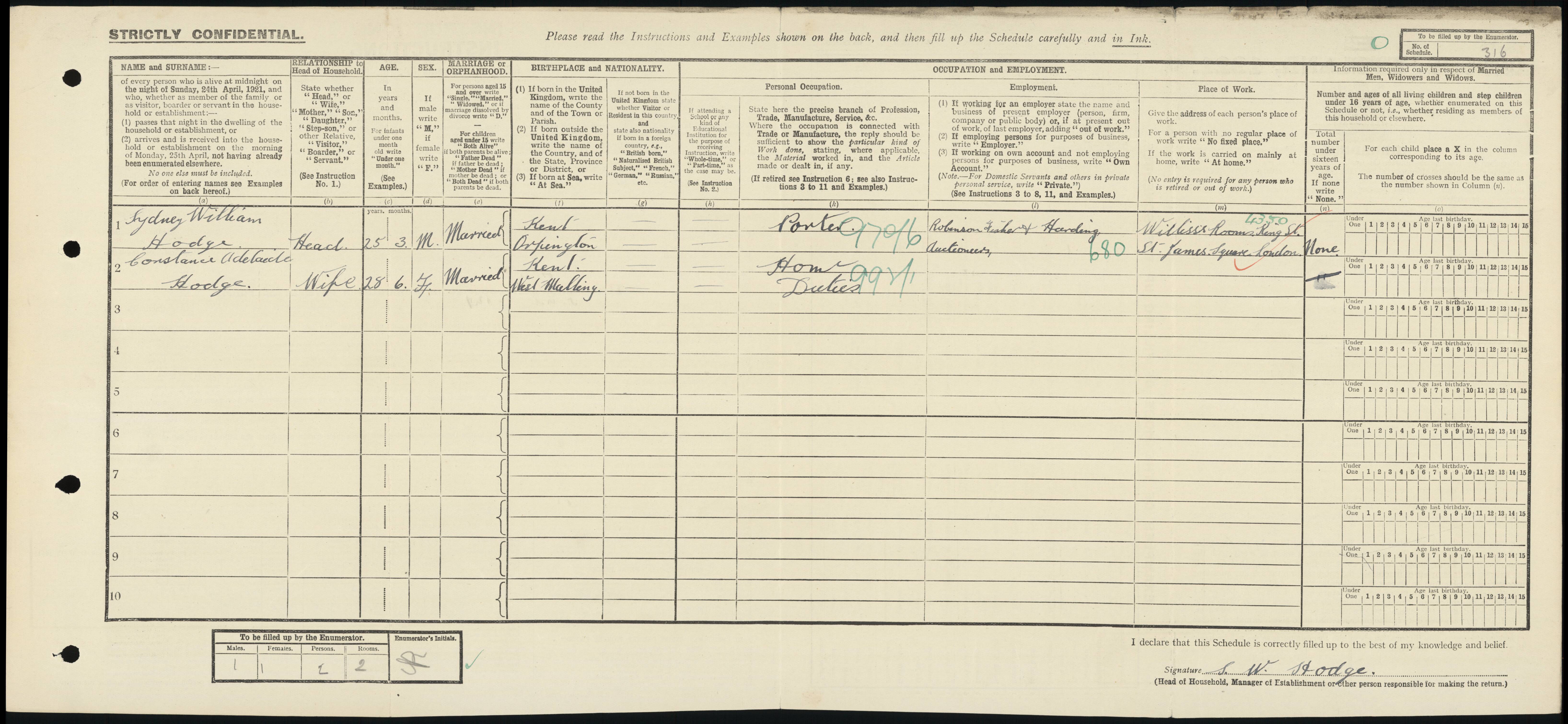 • Lived at: 33 Burlington Road, 1921, Paddington, London & Middlesex, England. • Lived at: Bexley, Kent, 1939. Constance married Sydney William Hodge on 30 Aug 1918 in St. Barnabas, Dulwich, Surrey, England. (Sydney William Hodge was born on 17 Mar 1896 in Orpington, Kent, died on 23 Jul 1970 and was buried on 29 Jul 1970 in Greenwich, Kent, England.) |