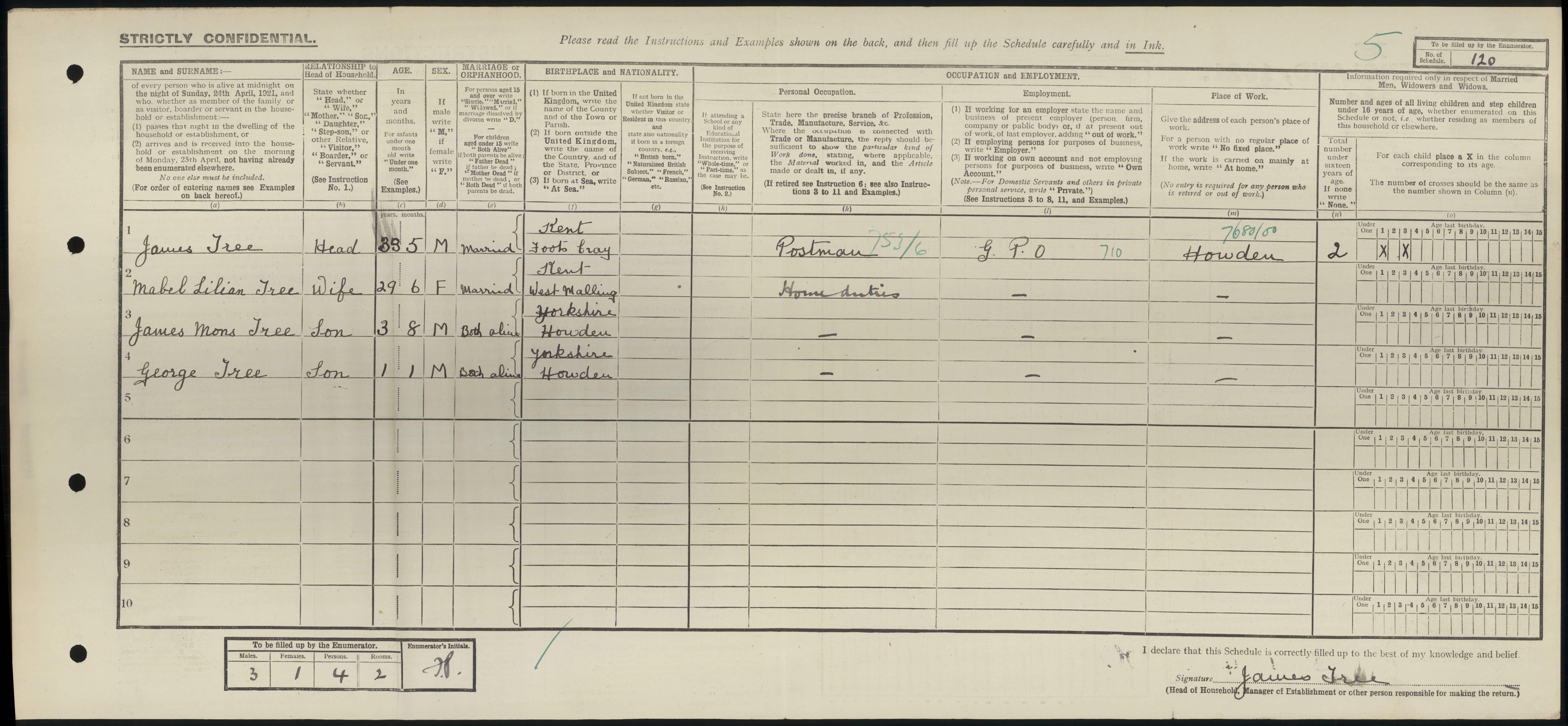 • Lived at: Flatgate, Howden, 1921, Thorpe, Yorkshire (East Riding), England. Lilian married James Tree on 17 Aug 1913 in St. Pauls Church, Haringey. (James Tree was born circa 1888 in Foots Cray, Kent, England and died after 1921.) |