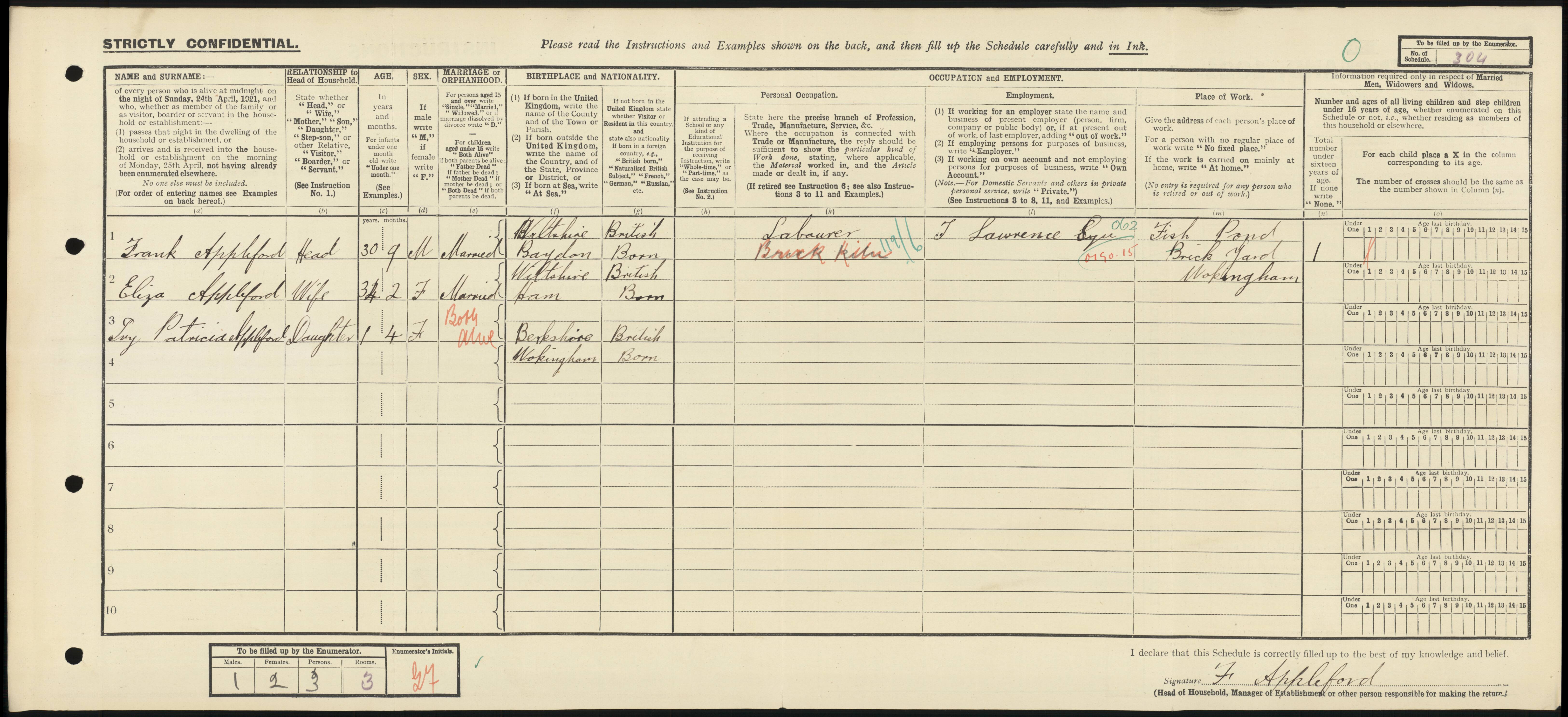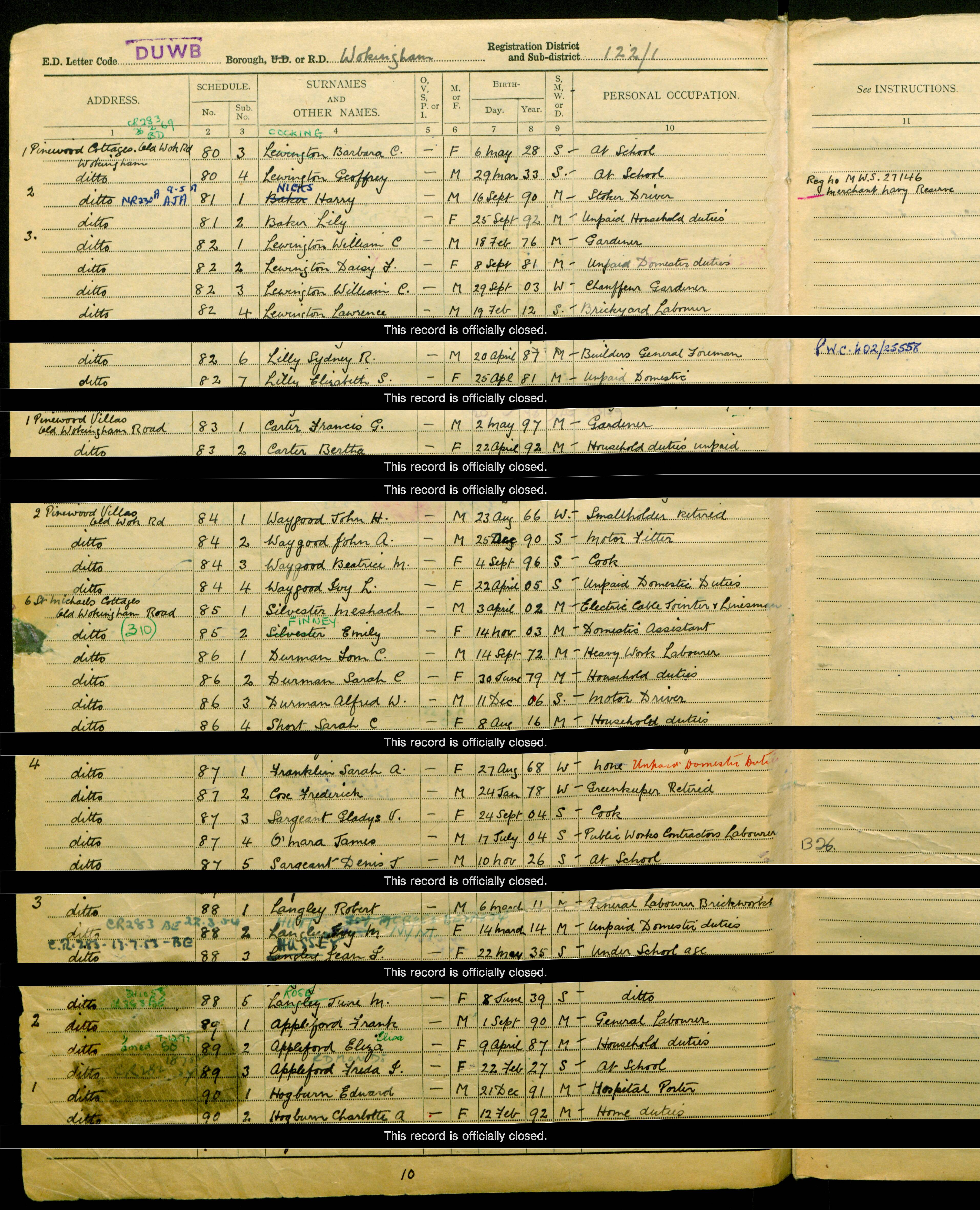 • Occupation: General Labourer, 1939, Wokingham, Berkshire, England.