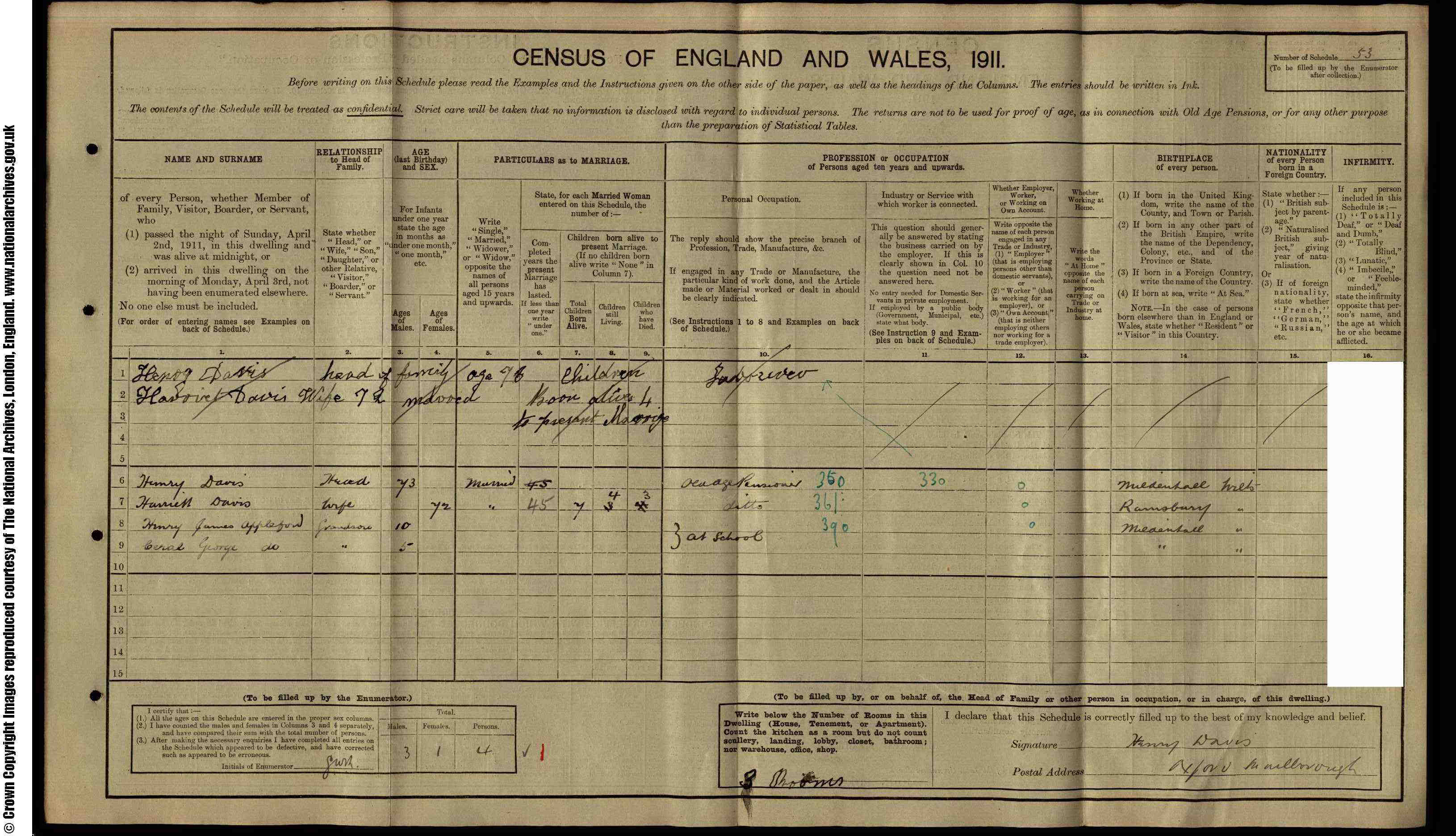 • Visited: Grandparents in Hungerford, 1911, Berkshire, England. • Lived at: Farm Carter, 1921, Chiseldon.