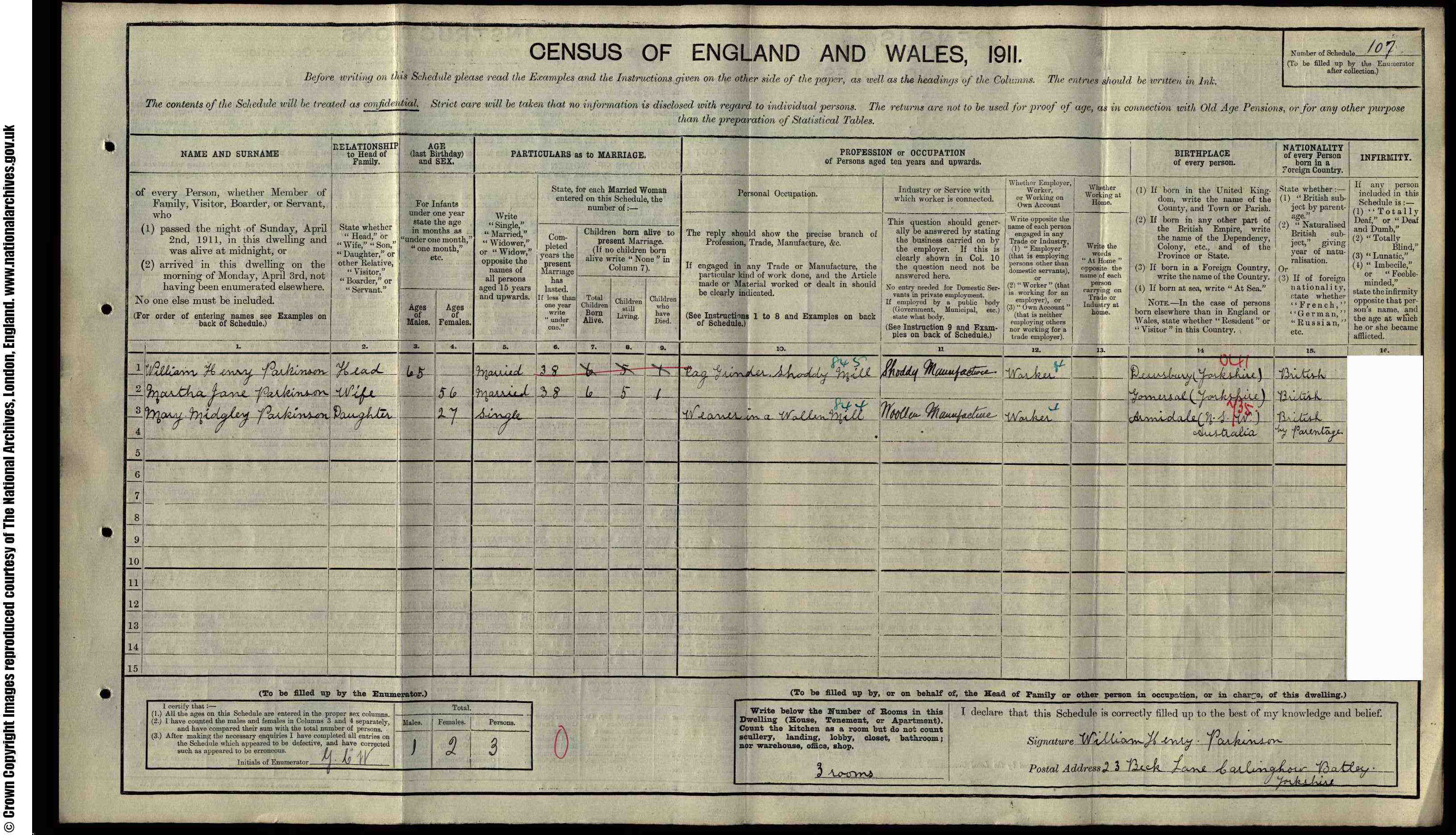 • Lived at: 23 Beck Lane, Carlinghow, 1911, Batley, Yorkshire, England. Mary married James William Pickering on 29 Oct 1911 in Batley, Yorkshire, England.1 (James William Pickering was born before 1888 in Heckmondwike, Yorkshire, England 1 and died in 1954 in Batley, Yorkshire, England, 1.) |