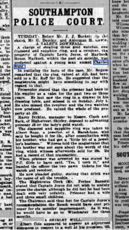 Another name for Charley was Charlie Nidd. Events • Occupation: Ships Linen Keeper (as per death). 4 • Lived at: 12 Portland Street, 1891, Westminster, London, England. 5 • Military: ENLISTED Royal Marine Artillery, 24 Oct 1898. • Military: deserted, 16 Sep 1900, Portsmouth. Name: