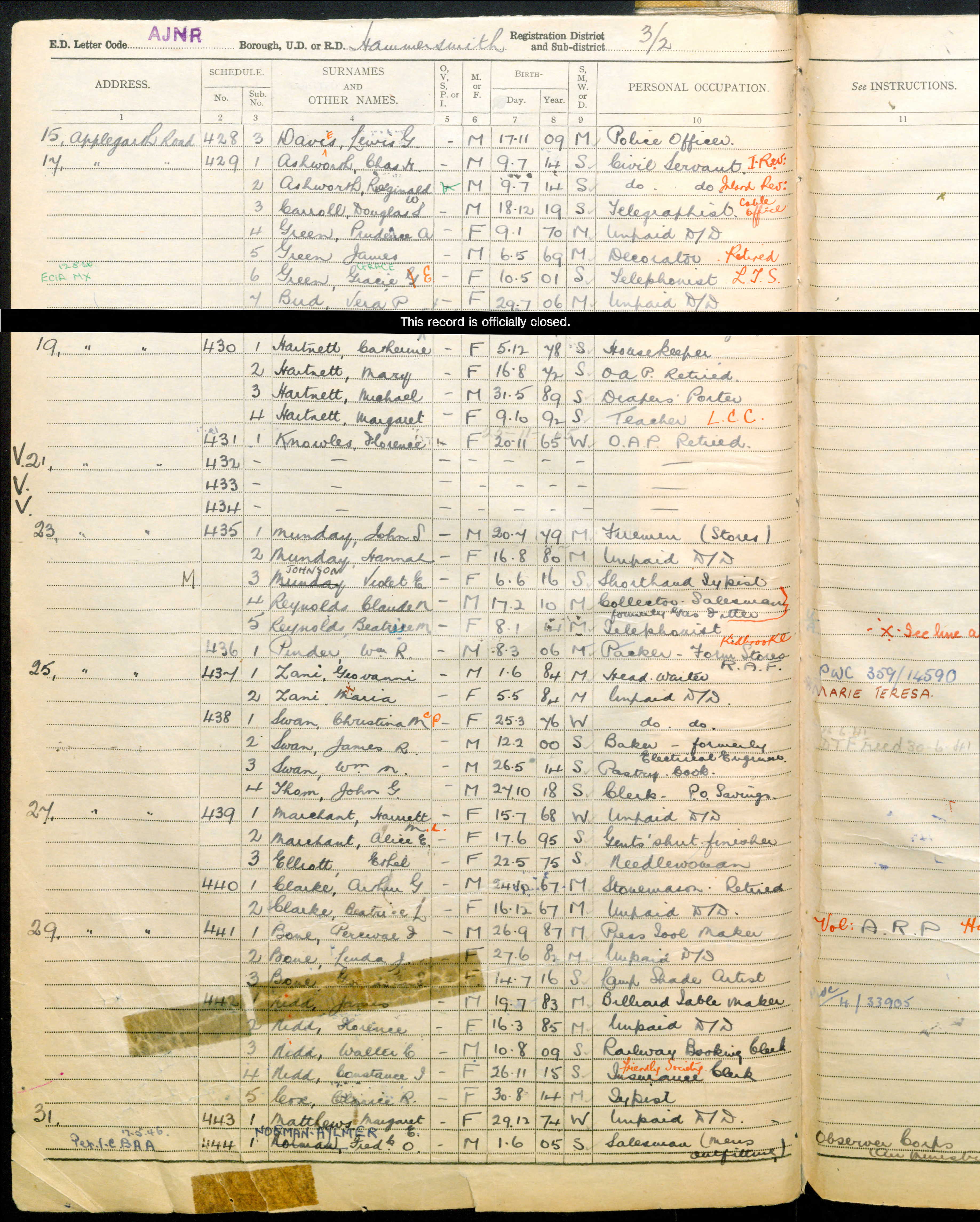 • Lived at: 29 Applegarth Road, 1939, Hammersmith, Middlesex, England. • Occupation: Billard table Maker, 1939, Hammersmith, Middlesex, England. James married Florence Lincoln on 24 Dec 1904 in Westminster, Middlesex, England.1 (Florence Lincoln was born on 16 Mar 1885 and died on 12 Aug 1959.) |