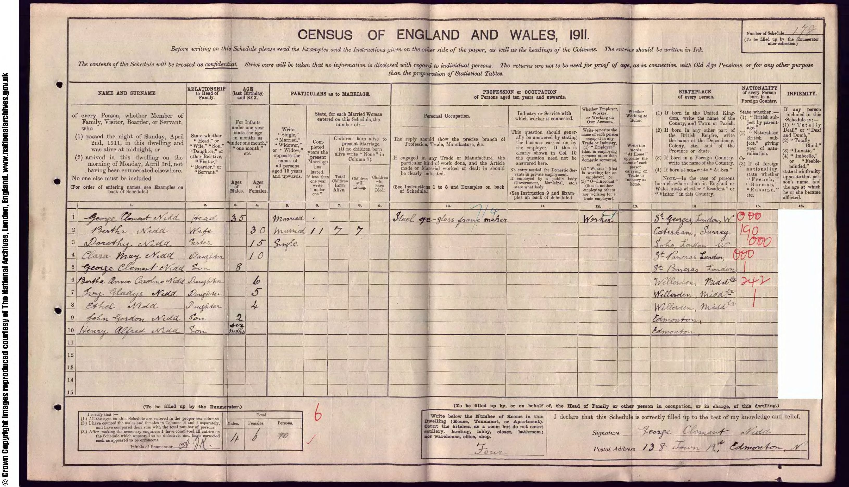 • Lived at: 138 Town Road, 1911, Edmonton, Middlesex, England.