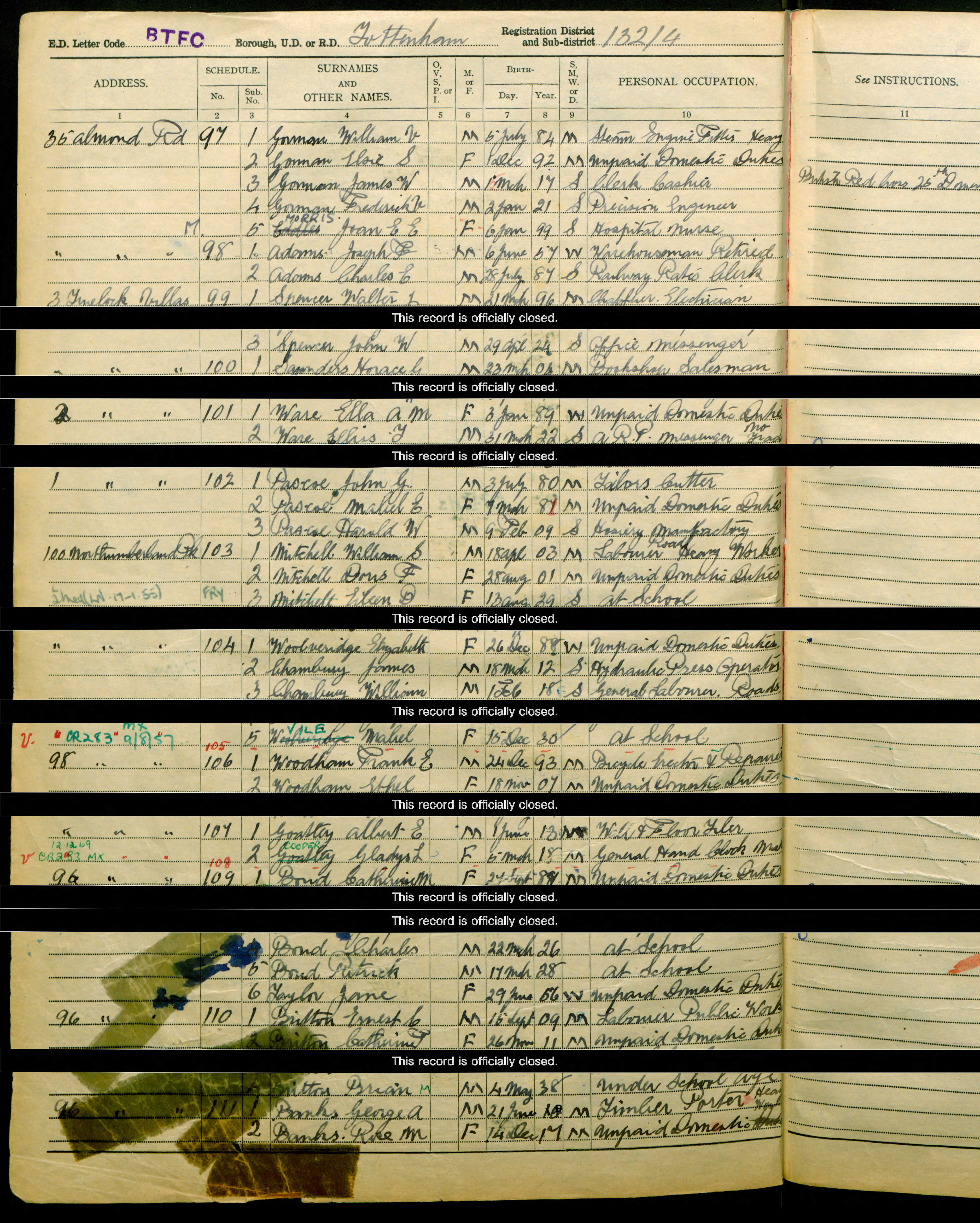 • Lived at: 98 Northumberland Dr, 1939, Tottenham, Middlesex, England. Ethel married Frank E. Woodham Jun Q 1928 in Edmonton, Middlesex, England. (Frank E. Woodham was born on 24 Dec 1893 and died Dec Q 1970 in Harringay, Edmonton, Middlesex, England.) |