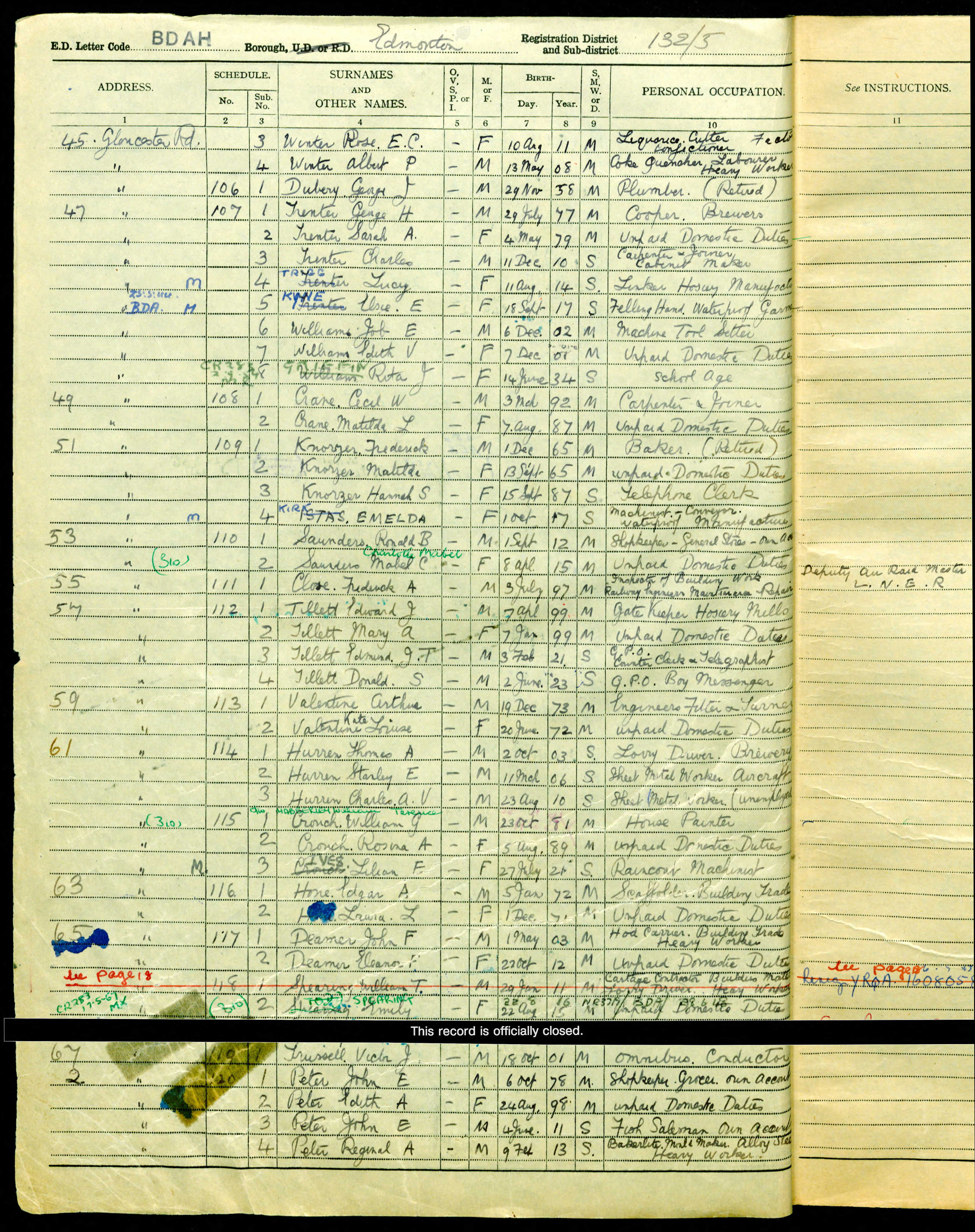 • Lived at: 78 St. Malo Avenue, 1921, Edmonton, Middlesex, England.
