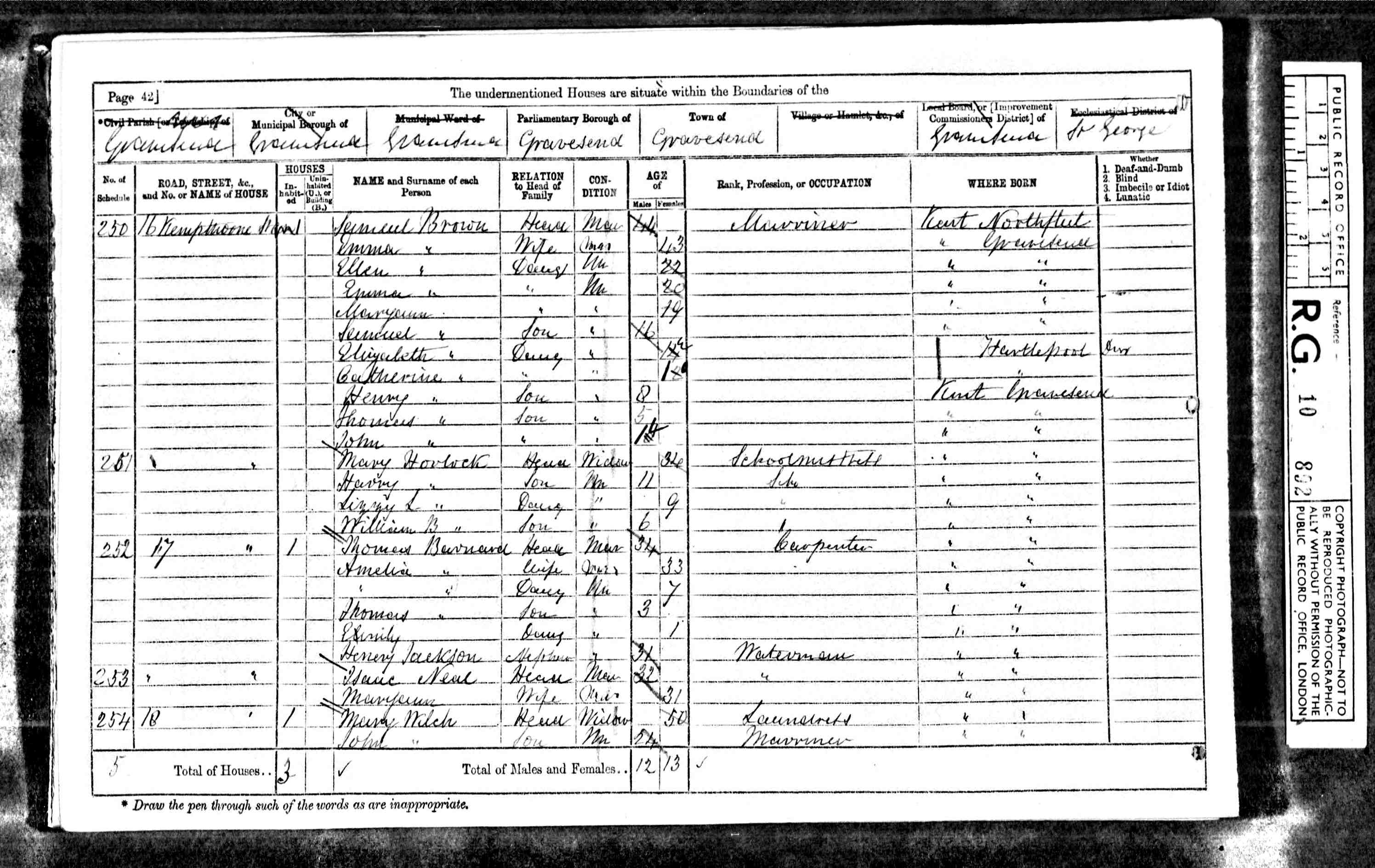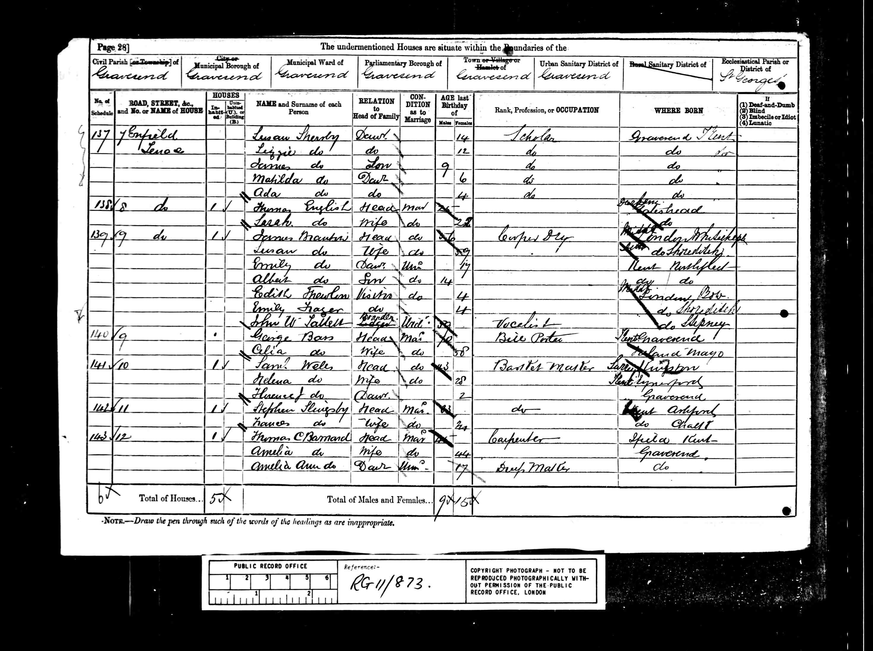 • Occupation: Carpenter, 1871, Gravesend, Kent, England. 3 • Lived at: 12 Enfield House, 1881, Gravesend, Kent, England. 4