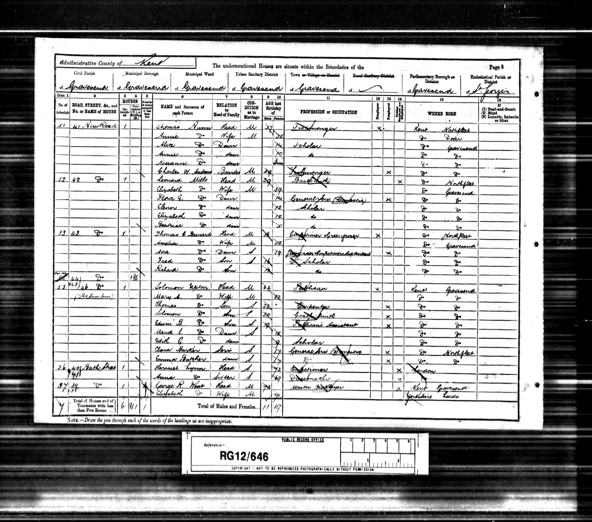 • Occupation: Confectioner and Greengrocer, 1891, Gravesend, Kent, England. 5 • Lived at: 43 New Road, 1901, Gravesend, Kent, England. 6 • Occupation: Fruiterer (Shopkeeper), 1901, Gravesend, Kent, England. 6