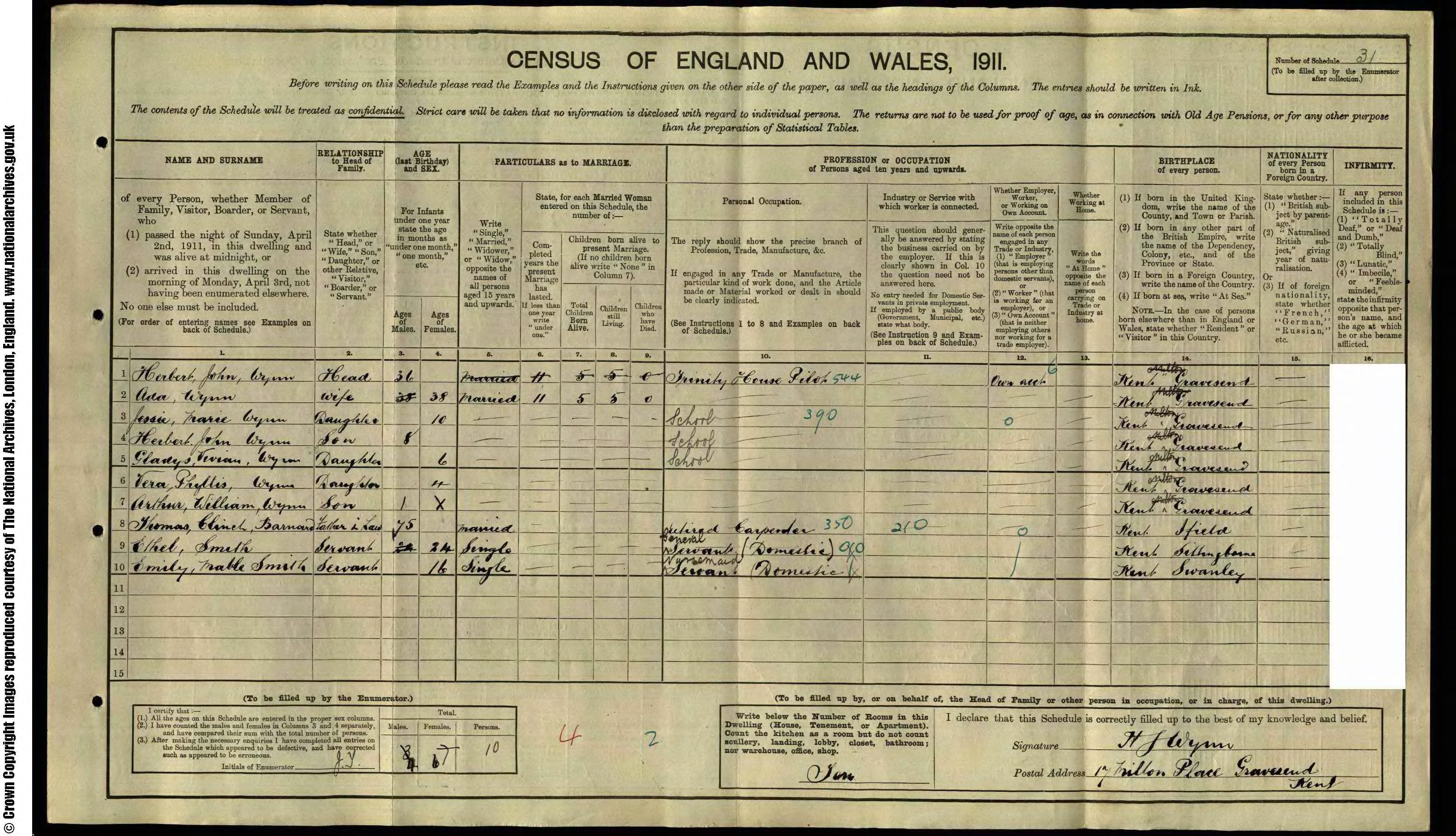 • Lived at: 17 Millon Place, 1911, Gravesend, Kent, England.