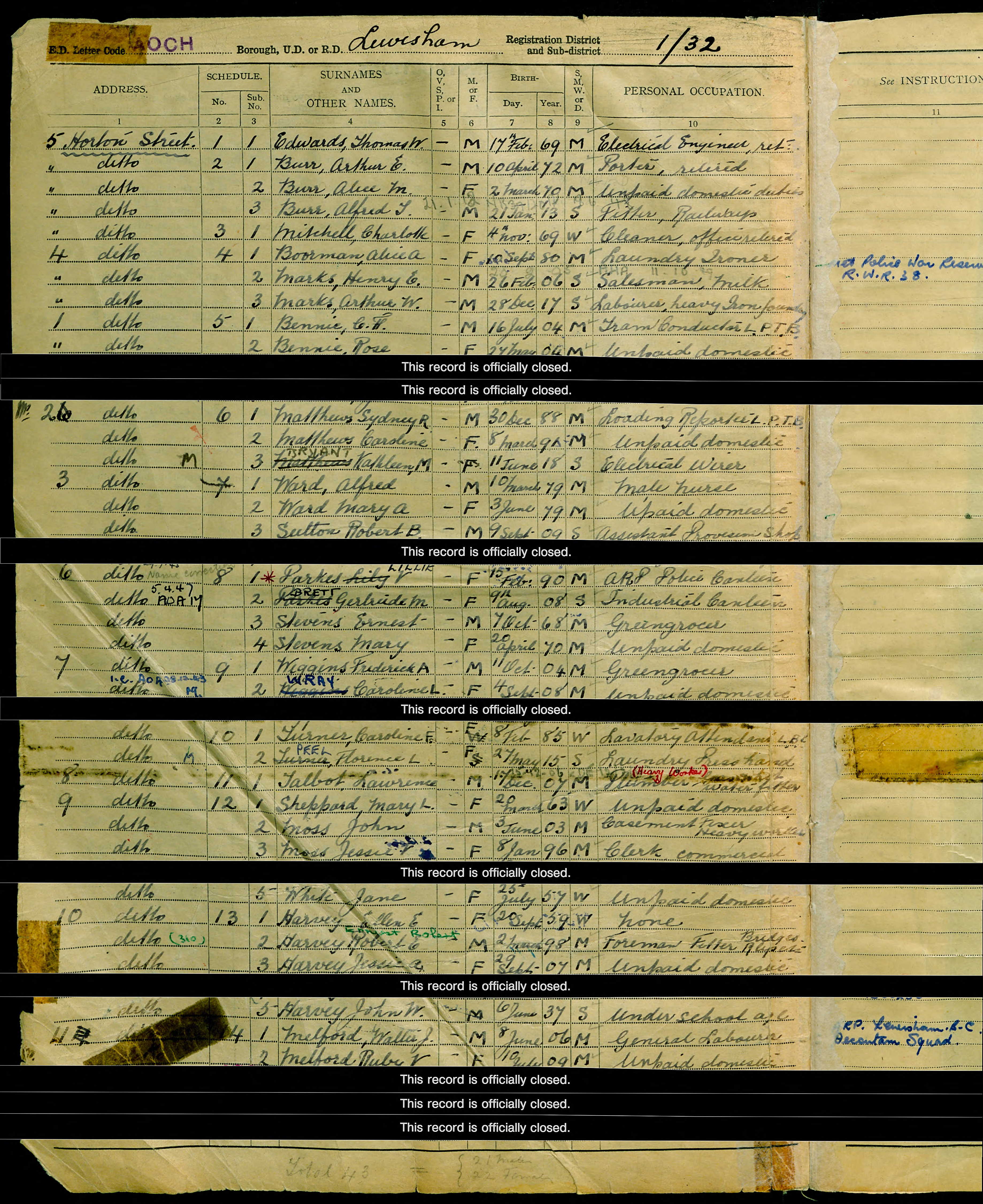 • Lived at: 90 Sand Street, 1911, WoolwichEngland. • Occupation: Radial Driller out of work, 1911, WoolwichEngland. • Occupation: Royal Navy, 1921, HMS Stuart, Constantinople. • Lived at: 6 Horton Street, 1939, Lewisham, Kent, England.