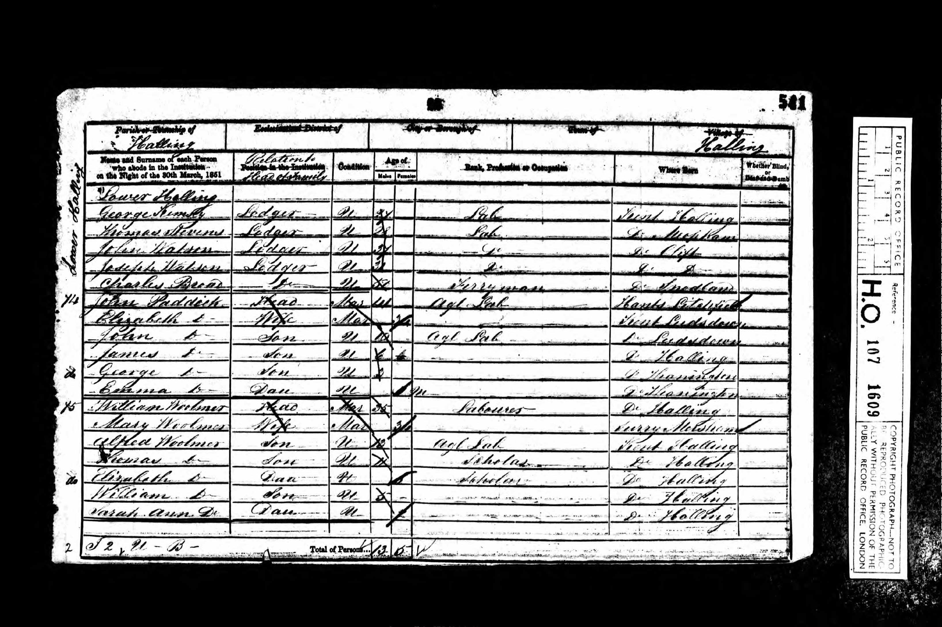 Published by Ancestry.co.uk (1851 English and Welsh Census(London, TNA/Ancestry.co.uk, 1952) , Web site showing copies of original enumerator schedules) ID: CEN 1851, CEN ho 107 1609 541 xx. Repository: Call Number: film 0087558. Cit. Date: 11 May 2006. Cit. ID: CEN ho 107 1609 541 xx. Surety: 2.