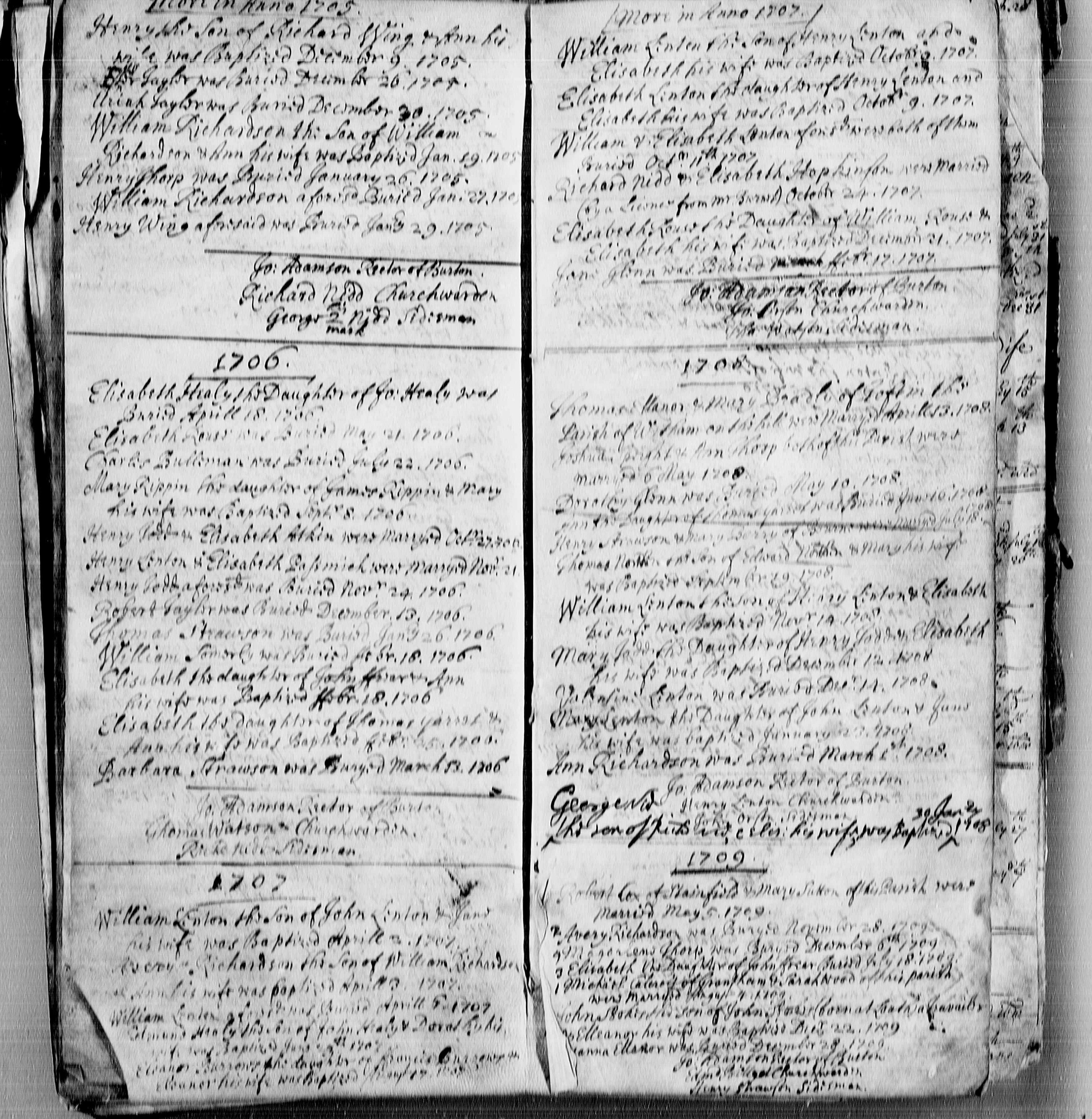 Other names for Richard were Richard Ned, Richard Nid and Richard Nidds. Baptism Notes: Name: Events • Occupation: Churchwarden from at least 1705 with his father as sidesman?.