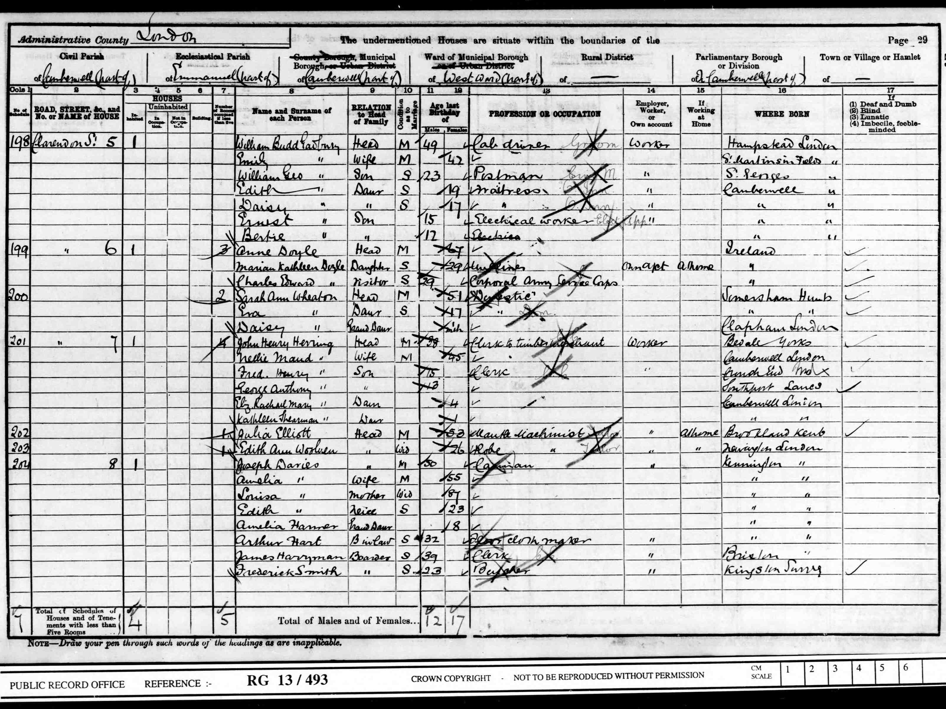 • Lived at: Clarendon Street, 1901, Camberwell, Surrey, England. 3