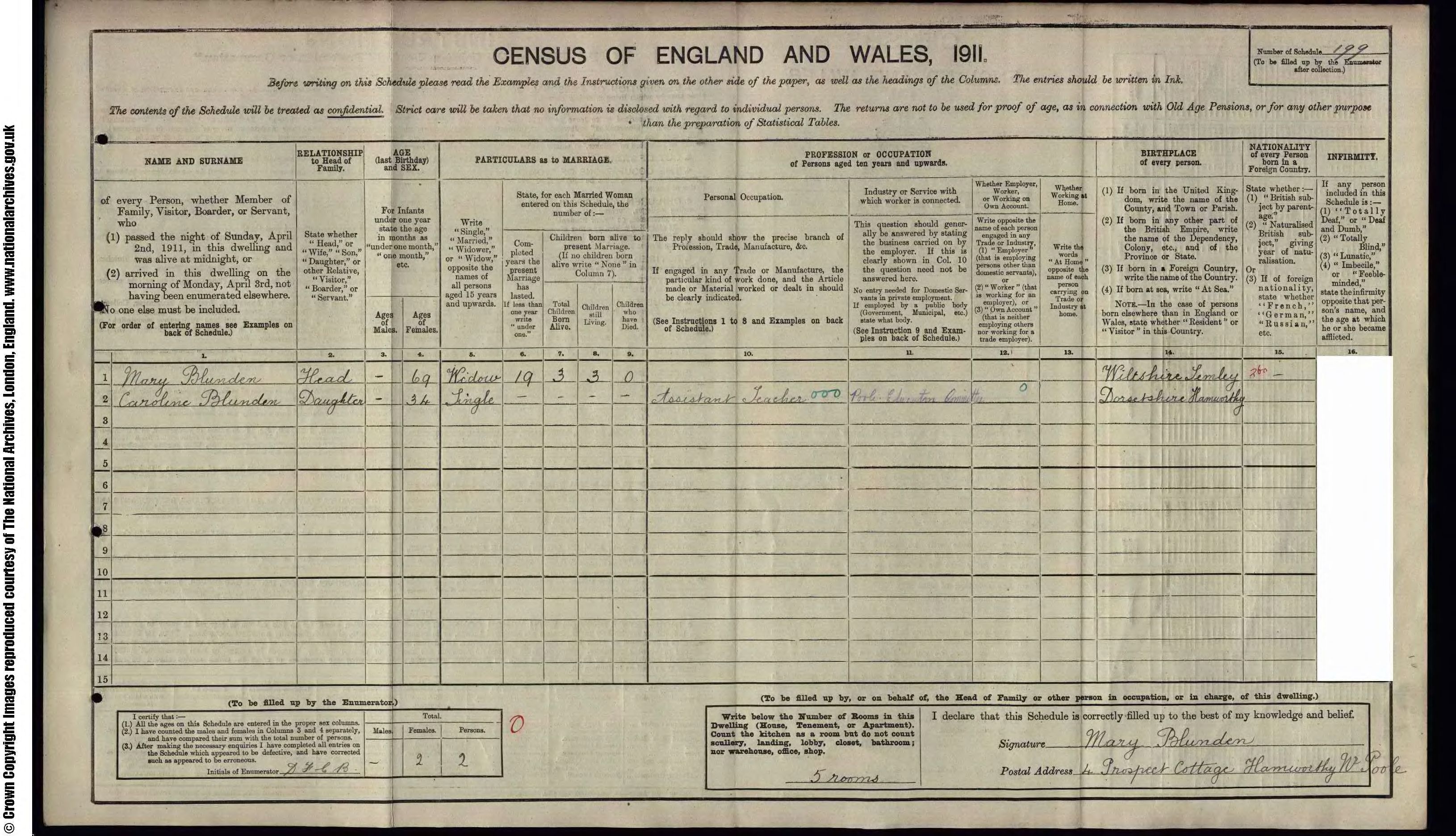 • Lived at: 4 Prospect Cottage, 1911, Hamworthy, Dorset, England. • Occupation: General Domestic Studen, 1921, Poole, Dorset, England. Interestingly she went from being a teacher to being a servant of a Head Teacher? |