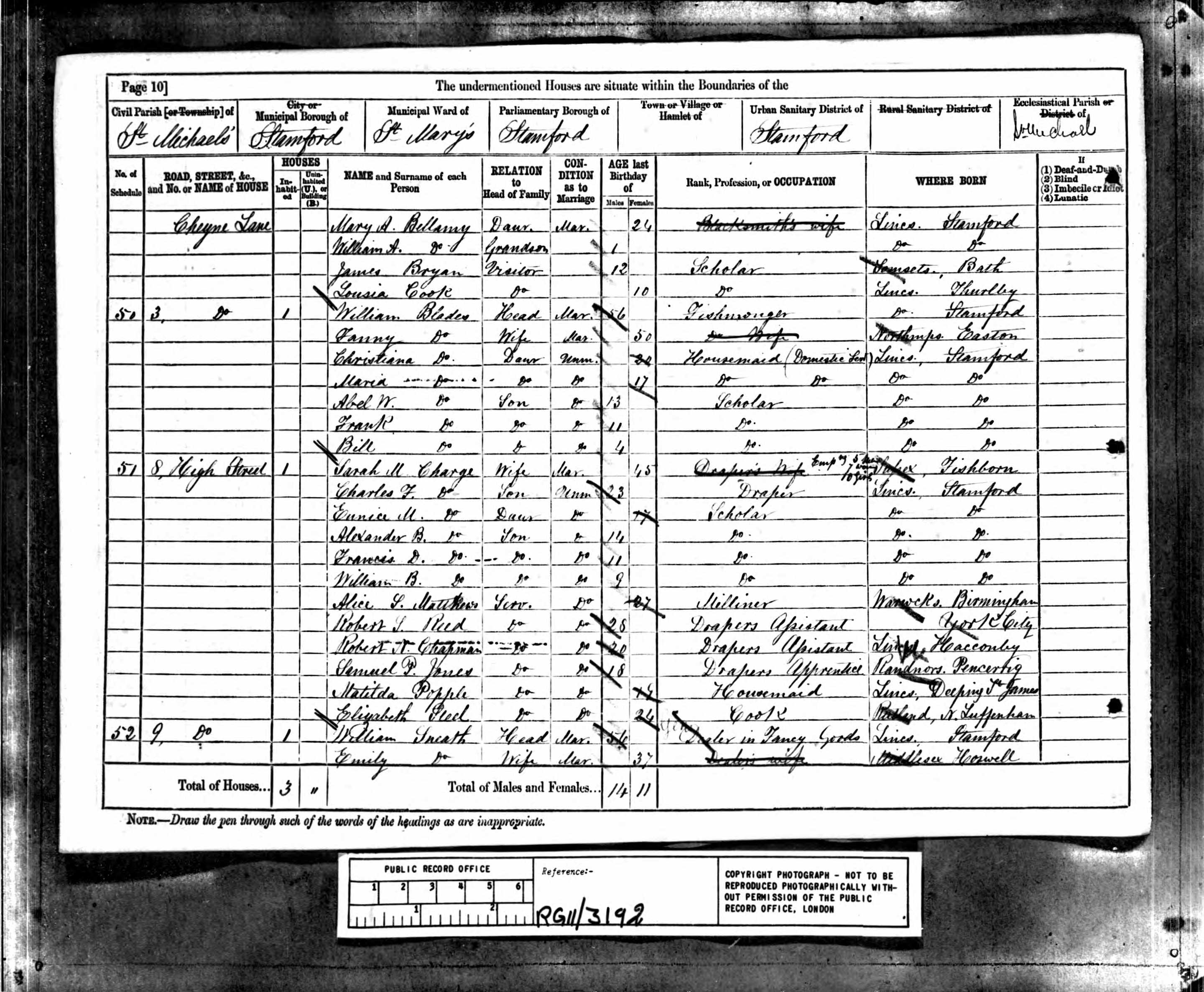 • Occupation: Drapers Asst, 1881, Bourne, Lincolnshire, England. • Lived at: Melrose House, 1891, Boston, Lincolnshire, England.