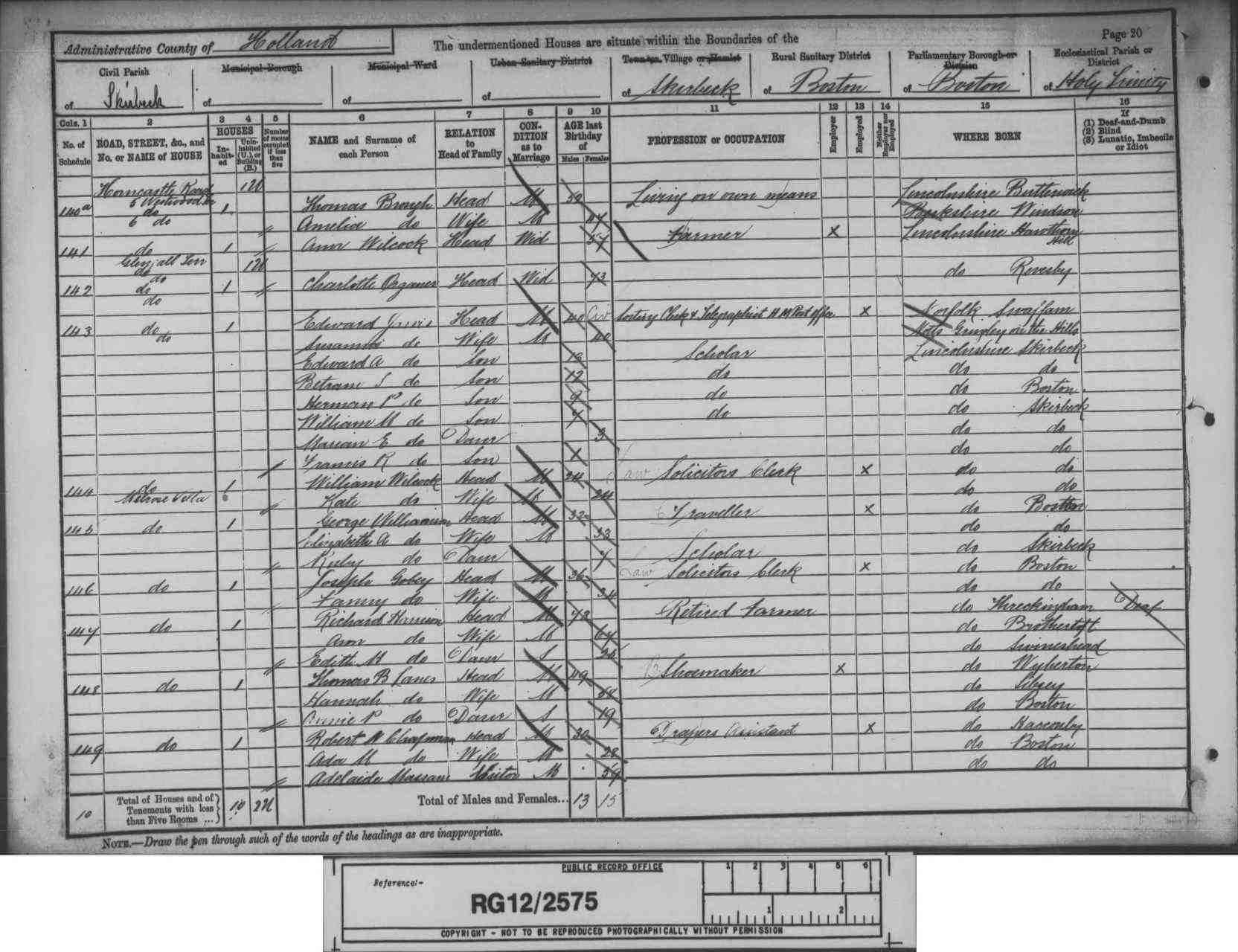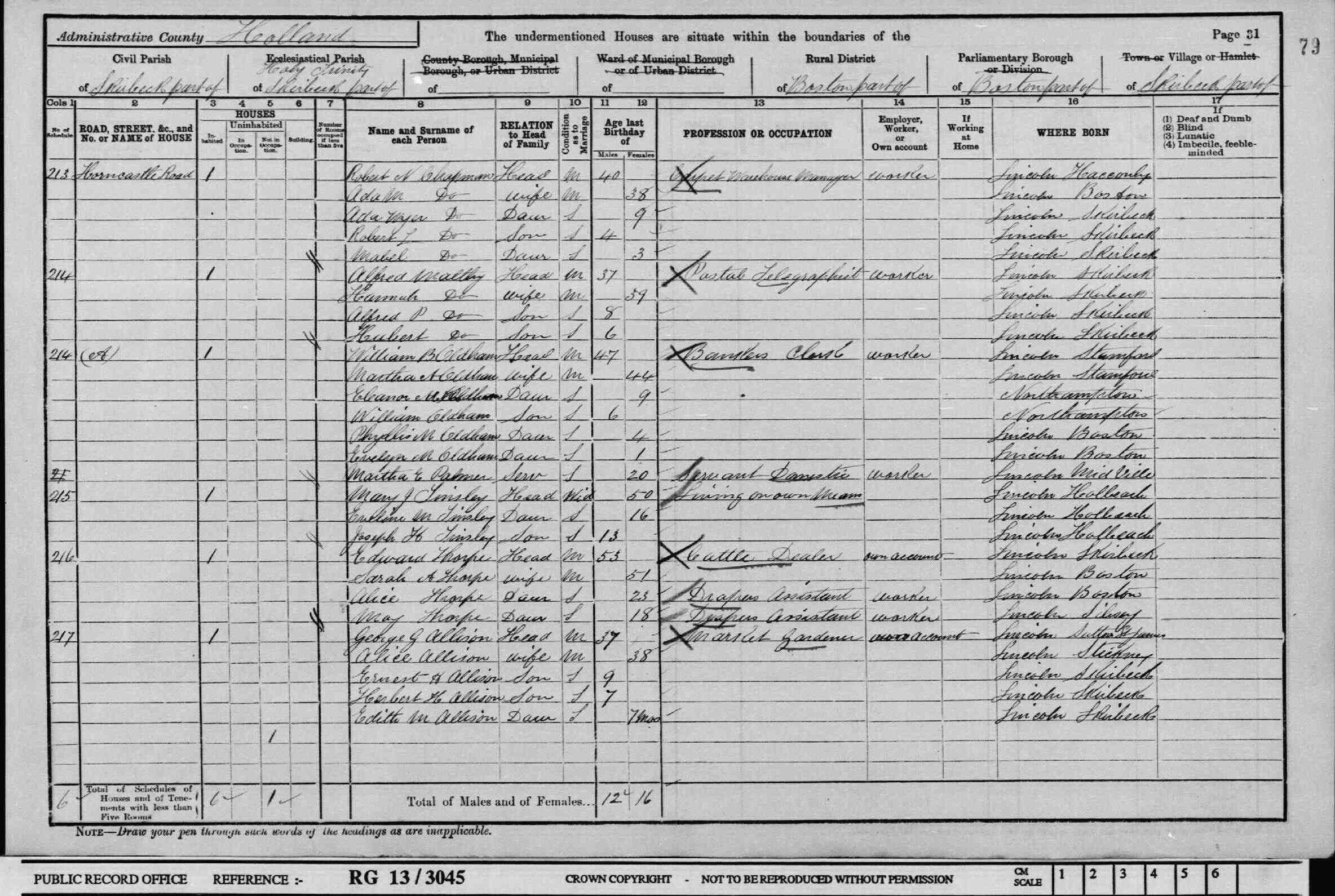 • Occupation: Draper's Assistant, 1891, Boston, Lincolnshire, England.