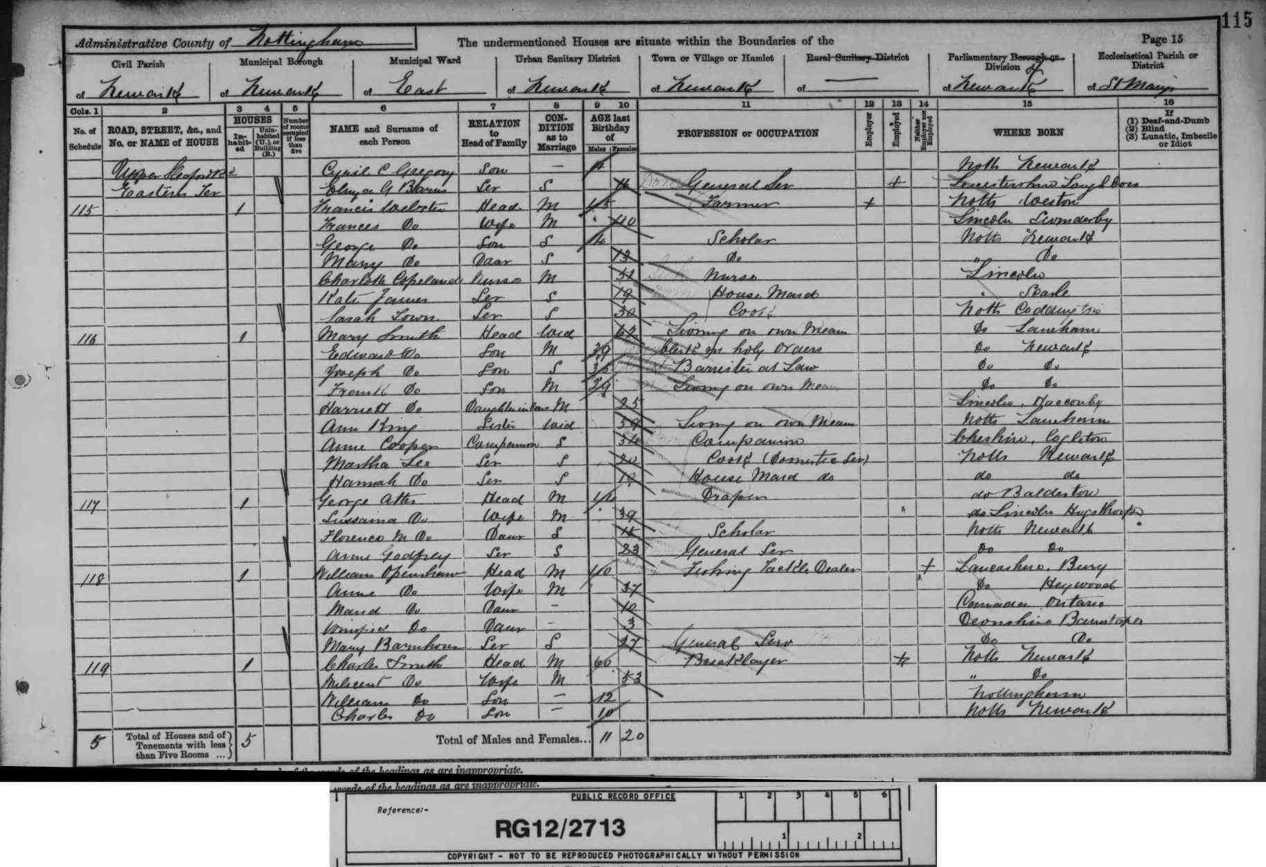 • Lived at: Eastern Terrace,Upper Sleaford Road, 1891, NEwark Upon Trent, Newark, Notts.