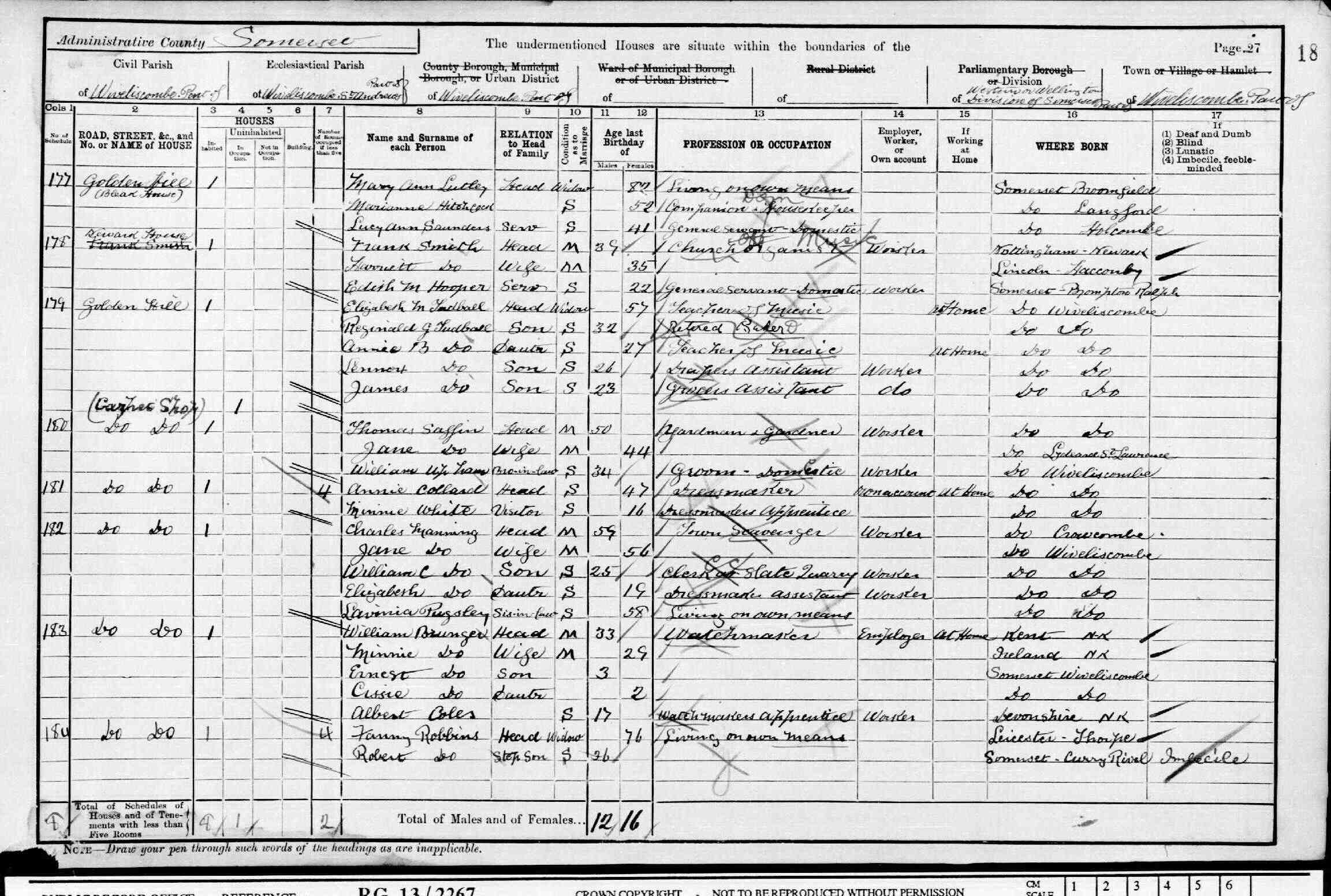 • Lived at: Neward House, 1901, Wiveliscombe, Wiveliscombe, Somerset, England.