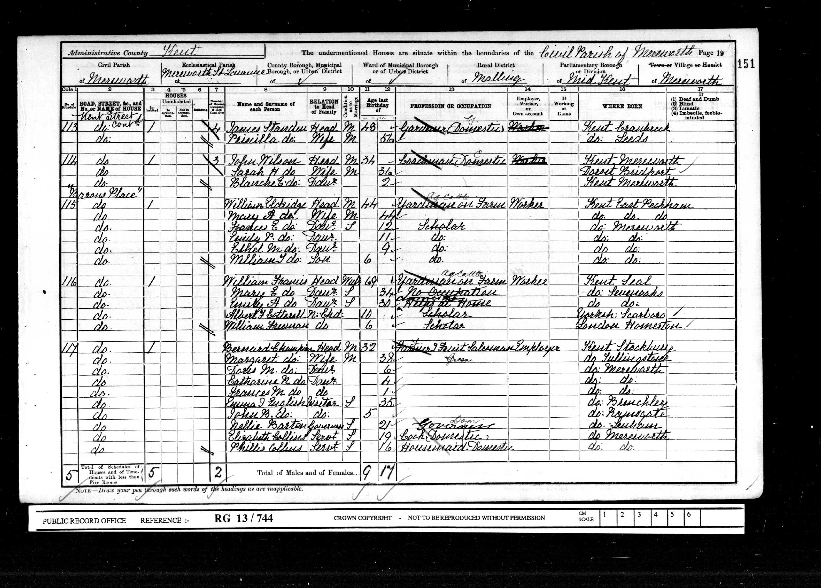 • Lived at: Barrow Place, 1901, Mereworth, Kent, England. • Occupation: Cook, 1901, Mereworth, Kent, England. Elizabeth married George H. Bishop Jun Q 1916 in Malling R.D., Kent, England. |