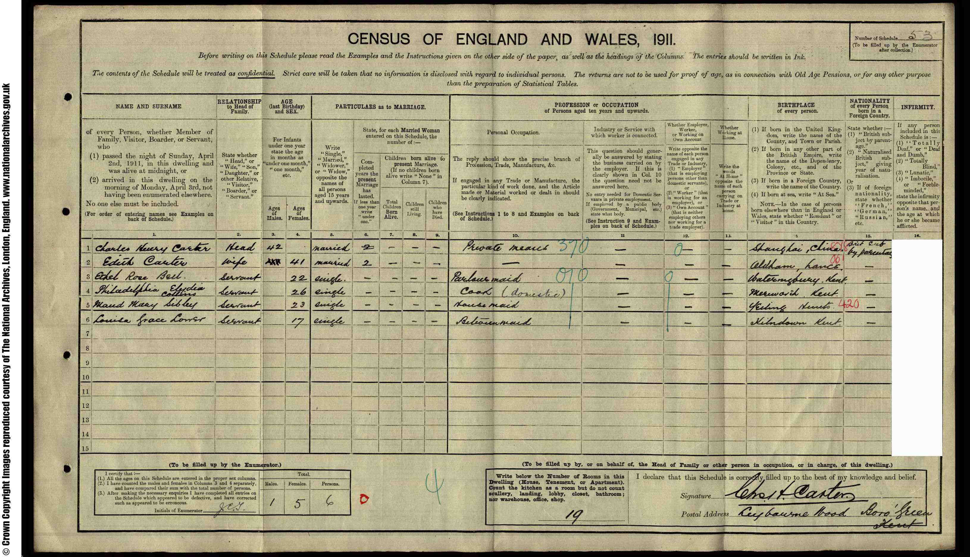 • Occupation: Cook, 1911, Borough Green, Kent.